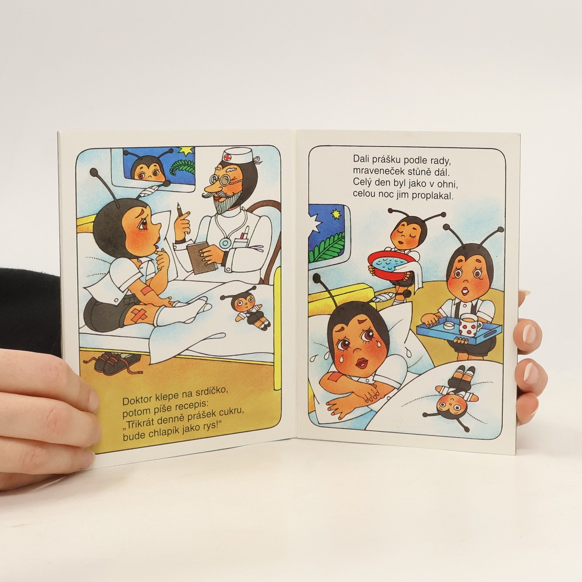 Veršovaný příběh s dobrým koncem o tom, jak polámaného mravenečka nevyléčí prášky mravenčího doktora, ale soucit a porozumění dobrých přátel, vychází jako oblíbené minileporelo ilustrované autorem Krtečka.