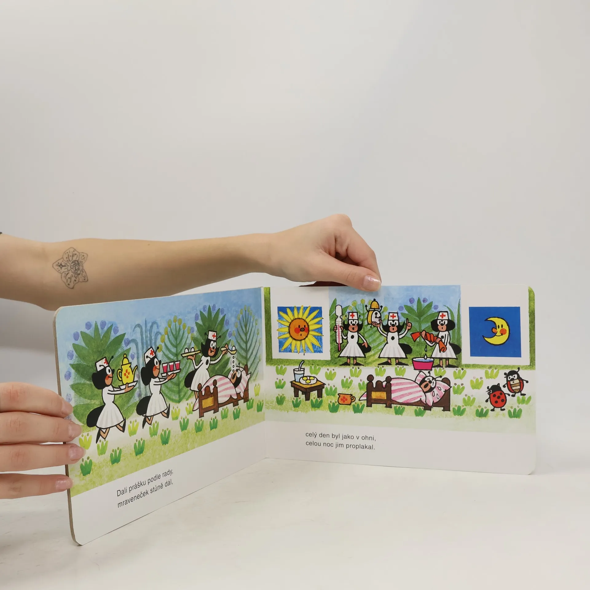 Veršovaný příběh s dobrým koncem o tom, jak polámaného mravenečka nevyléčí prášky mravenčího doktora, ale soucit a porozumění dobrých přátel, vychází jako oblíbené minileporelo ilustrované autorem Krtečka.