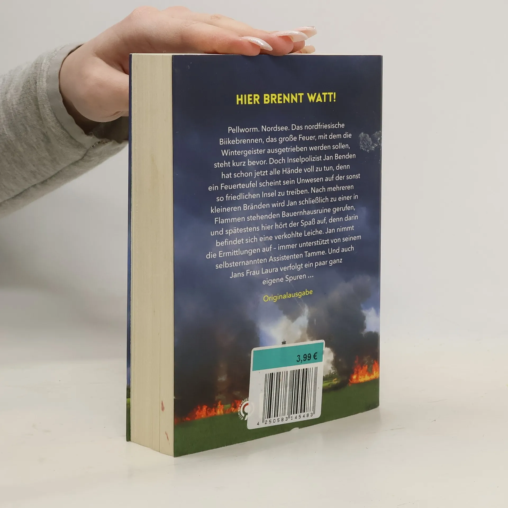 Feuer auf Pellworm! Der spannende zweite Fall für Laura und Jan Benden – und natürlich Tamme. Pellworm. Nordsee. Das nordfriesische Biikebrennen, das große Feuer, mit dem die Wintergeister ausgetrieben werden sollen, steht kurz bevor. Doch Inselpolizist Jan Benden hat schon jetzt alle Hände voll zu tun, denn ein Feuerteufel scheint sein Unwesen auf der sonst so friedlichen Insel zu treiben. Nach mehreren kleineren Bränden wird Jan schließlich zu einer in Flammen stehenden Bauernhausruine gerufen, und spätestens hier hört der Spaß auf, denn darin befindet sich eine verkohlte Leiche. Jan nimmt die Ermittlungen auf – immer unterstützt von seinem selbsternannten Assistenten Tamme. Und auch Jans Frau Laura verfolgt ein paar ganz eigene Spuren … Auf Mörderjagd mit dem Inselpolizisten: Band 1: WattenmeermordBand 2: WattenmeerfeuerBeide Fälle sind unabhängig voneinander lesbar.