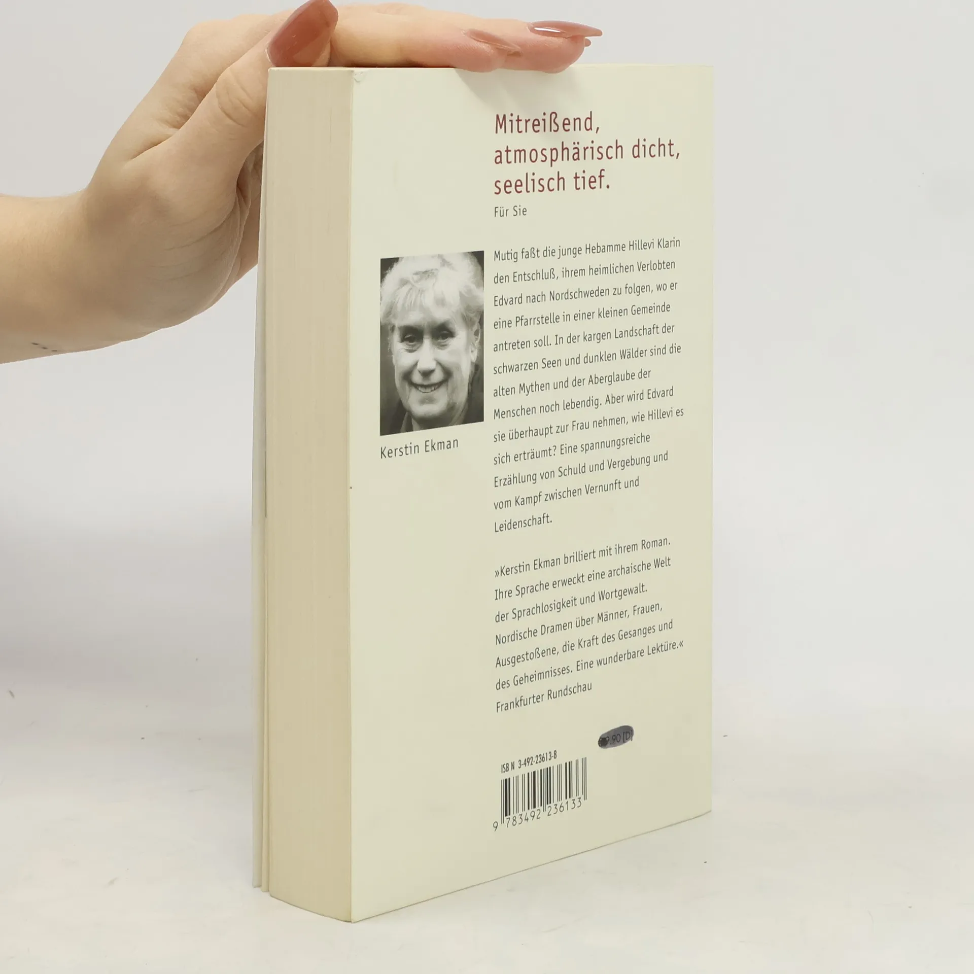 Mutig faßt die junge Hebamme Hillevi Klarin den Entschluß, ihrem heimlichen Verlobten Edvard nach Nordschweden zu folgen, wo er eine Pfarrstelle in einer kleinen Gemeinde antreten soll. In der kargen Landschaft der schwarzen Seen und dunklen Wälder scheint die Zeit stehengeblieben: Die alten Mythen und der Aberglaube der Menschen sind noch lebendig. Und wird Edvard sie überhaupt zur Frau nehmen, wie Hillevi es sich erträumt? Eine spannungsreiche Erzählung von Schuld und Vergebung und vom Kampf zwischen Vernunft und Leidenschaft.