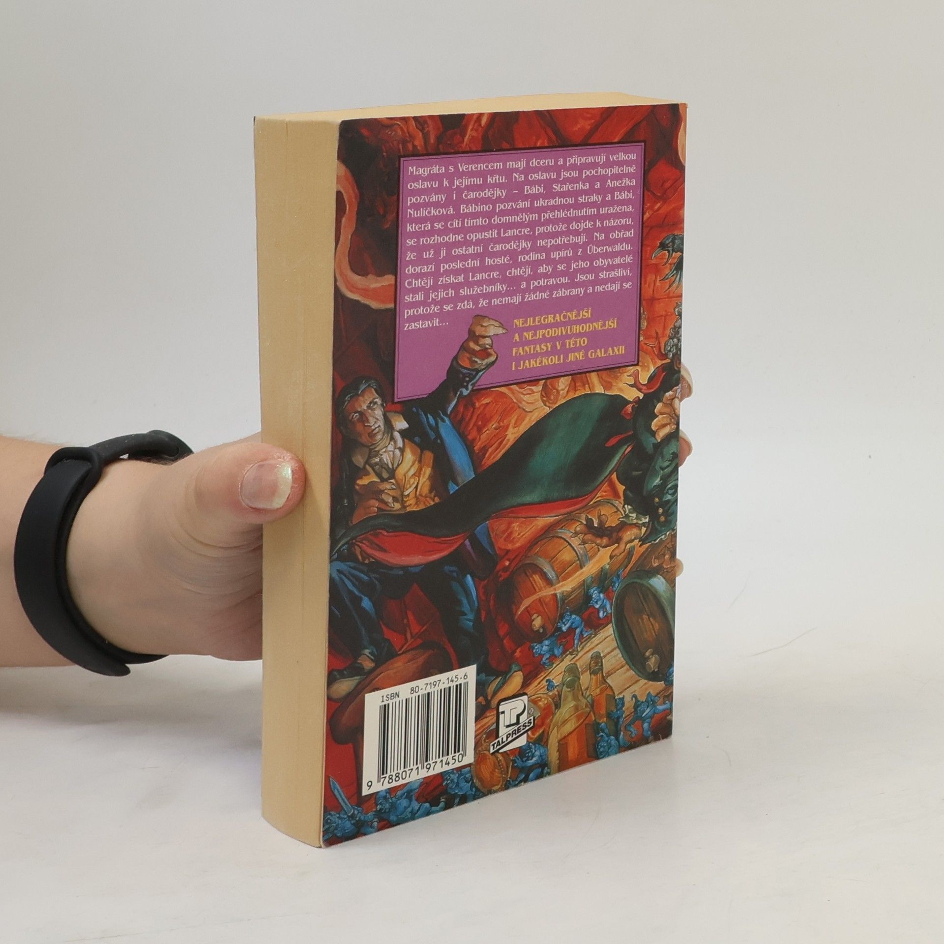 Magráta s Verencem mají dceru a připravují velkou oslavu k jejímu křtu. Na oslavu jsou pochopitelně pozvány i čarodějky - Bábi, Stařenka a Anežka Nulíčková. Bábino pozvání ukradnou straky a Bábi, která se cítí tímto domnělým přehlédnutím uražena, se rozhodne opustit Lancre, protože dojde k názoru, že už ji ostatní čarodějky nepotřebují. Na obřad dorazí poslední hosté, rodina upírů z Überwaldu. Chtějí získat Lancre, chtějí, aby se jeho obyvatelé stali jejich služebníky... a potravou. Jsou strašliví, protože se zdá, že nemají žádné zábrany a nedají se zastavit... Úžasná Zeměplocha, kniha 23., přeložil Jan Kantůrek.