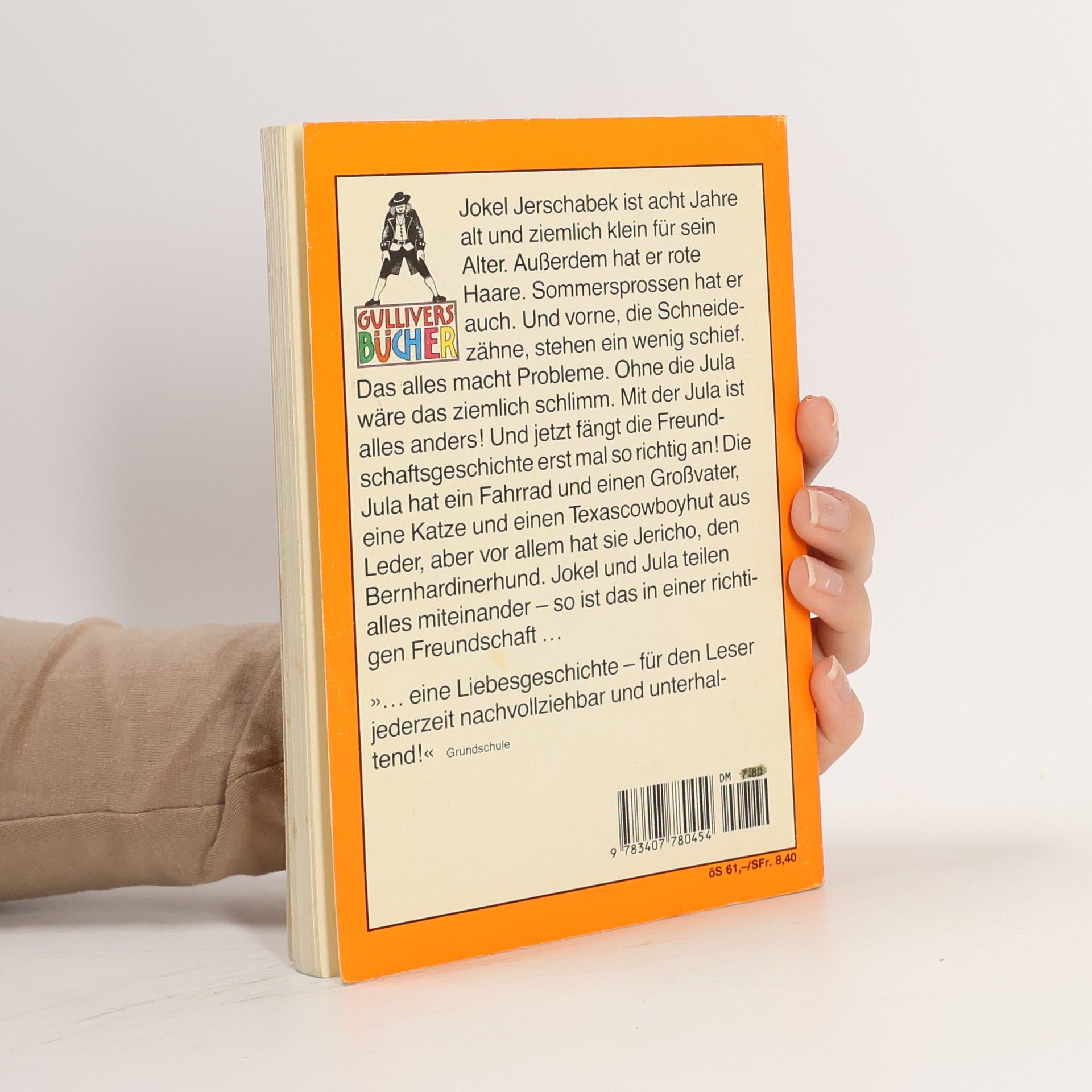 Die Freundschaftsgeschichte vom Jokel mit den Sommersprossen, von Jula mit dem Fahrrad und vom Bernhardiner Jericho. Jokel Jerschabek ist acht Jahre alt und ziemlich klein für sein Alter. Außerdem hat er rote Haare, Sommersprossen und schiefe Schneidezähne. Das alles macht Probleme - und wäre ohne die Jula ziemlich schlimm. Die Jula hat ein Fahrrad und einen Großvater, eine Katze, einen echten Texascowboyhut aus Leder, und vor allem hat sie einen Bernhardinerhund, den Jericho. Jula und Jokel teilen alles miteinander. Das muss bei einer richtigen Freundschaft so sein.