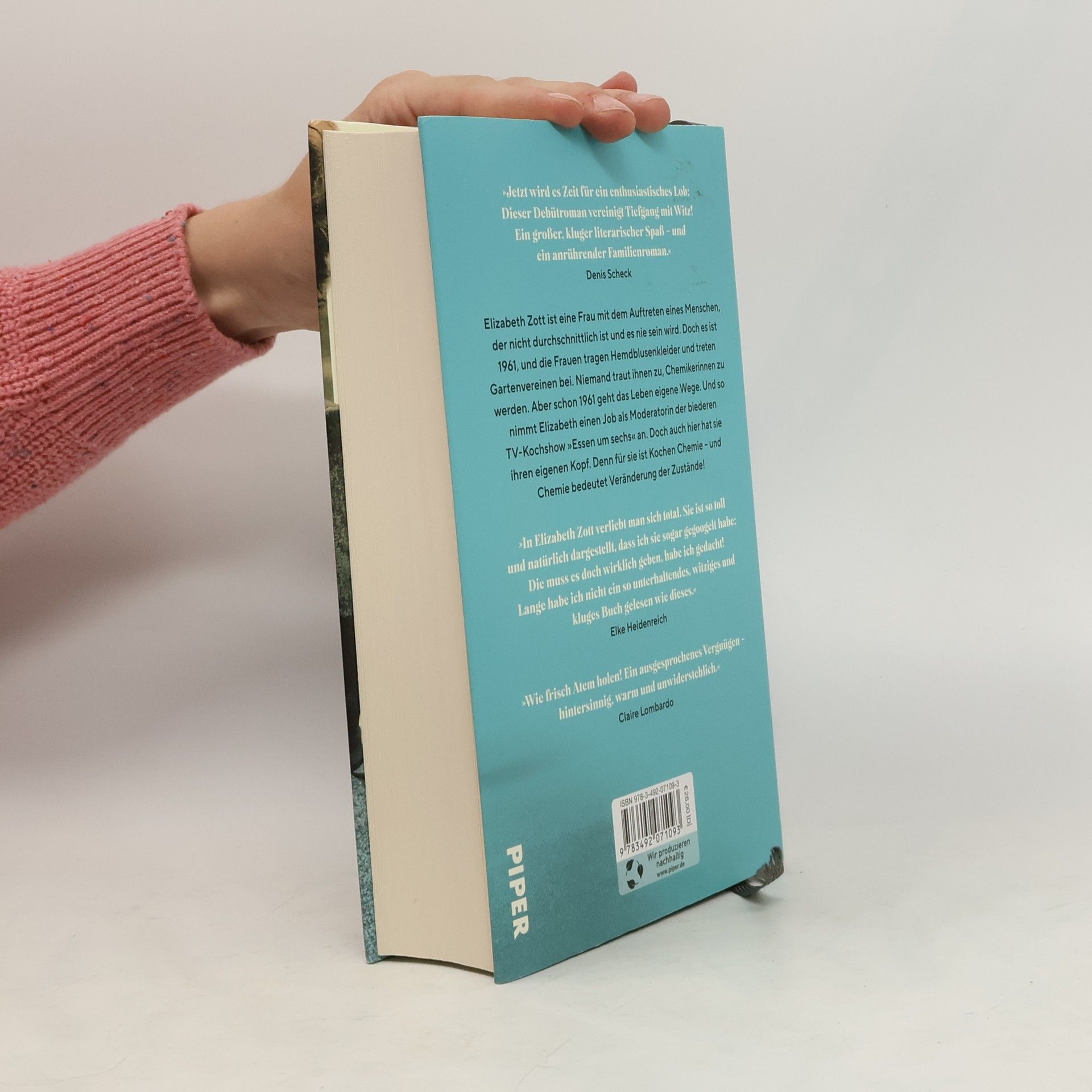 Etzt wird es Zeit für ein enthusiastisches Lob: Dieser Debütroman vereinigt Tiefgang mit Witz! Ein großer, kluger literarischer Spaß - und ein anrührender Familienroman.« Denis ScheckElizabeth Zott ist eine Frau mit dem Auftreten eines Menschen, der nicht durchschnittlich ist und es nie sein wird. Doch es ist 1961, und die Frauen tragen Hemdblusenkleider und treten Gartenvereinen bei. Niemand traut ihnen zu, Chemikerinnen zu werden. Aber schon 1961 geht das Leben eigene Wege. Und so nimmt Elizabeth einen Job als Moderatorin der biederen TV-Kochshow »Essen um sechs« an. Doch auch hier hat sie ihren eigenen Kopf. Denn für sie ist Kochen Chemie - und Chemie bedeutet Veränderung der Zustände!»In Elizabeth Zott verliebt man sich total. Sie ist so toll und natürlich dargestellt, dass ich sie sogar gegoogelt habe: Die muss es doch wirklich geben, habe ich gedacht! Lange habe ich nicht ein so unterhaltendes, witziges und kluges Buch gelesen wie dieses.« Elke Heidenreich»Wie frisch Atem holen! Ein ausgesprochenes Vergnügen - hintersinnig, warm und unwiderstehlich [Buchzentrum]