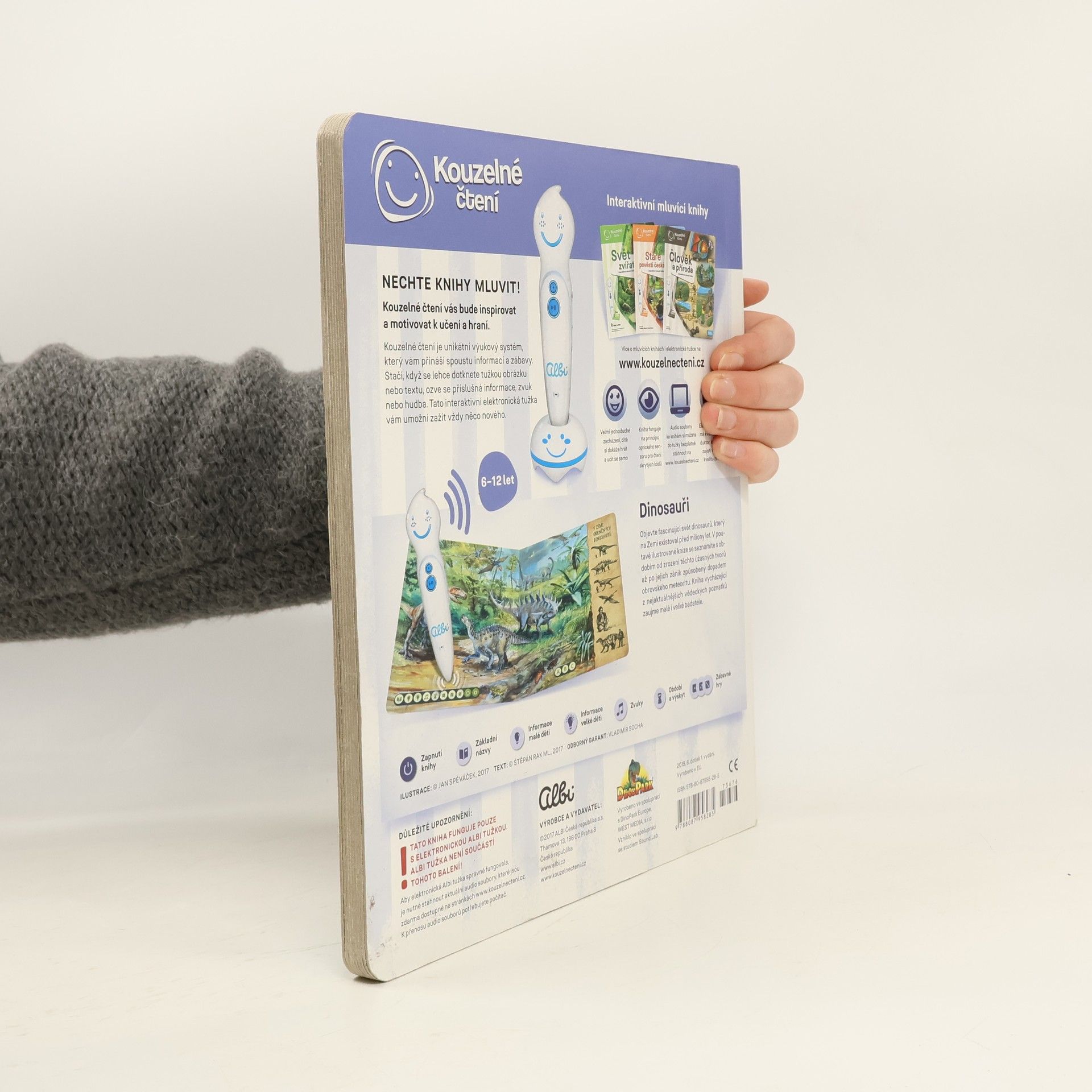 Kniha Dinosauři z edice Kouzelné čtení provede čtenáře od zrodu prvních dinosaurů přes druhohory, kdy dinosauři ovládli svět a dosáhli gigantických rozměrů, až k jejich zániku způsobeného dopadem obrovského meteoritu. Kniha dětem ukáže, jak dinosauři vypadali podle nejaktuálnějších vědeckých poznatků včetně zvuků, které mohli vydávat. Dinosauři osloví jak nejmenší děti od 6 let, tak i starší děti, které se již aktivně o prehistorický svět zajímají. Kniha Dinosauři obsahuje přes 1 700 zvuků a textů. Ilustrace: Jan Spěváček Text: Štěpán Rak ml. Odborný garant: Vladimír Socha Namluvil: Alfred Strejček Kniha byla vyrobena ve spolupráci s DinoPark Europe, WEST MEDIA, s.r.o. a studiem SoundLab.
