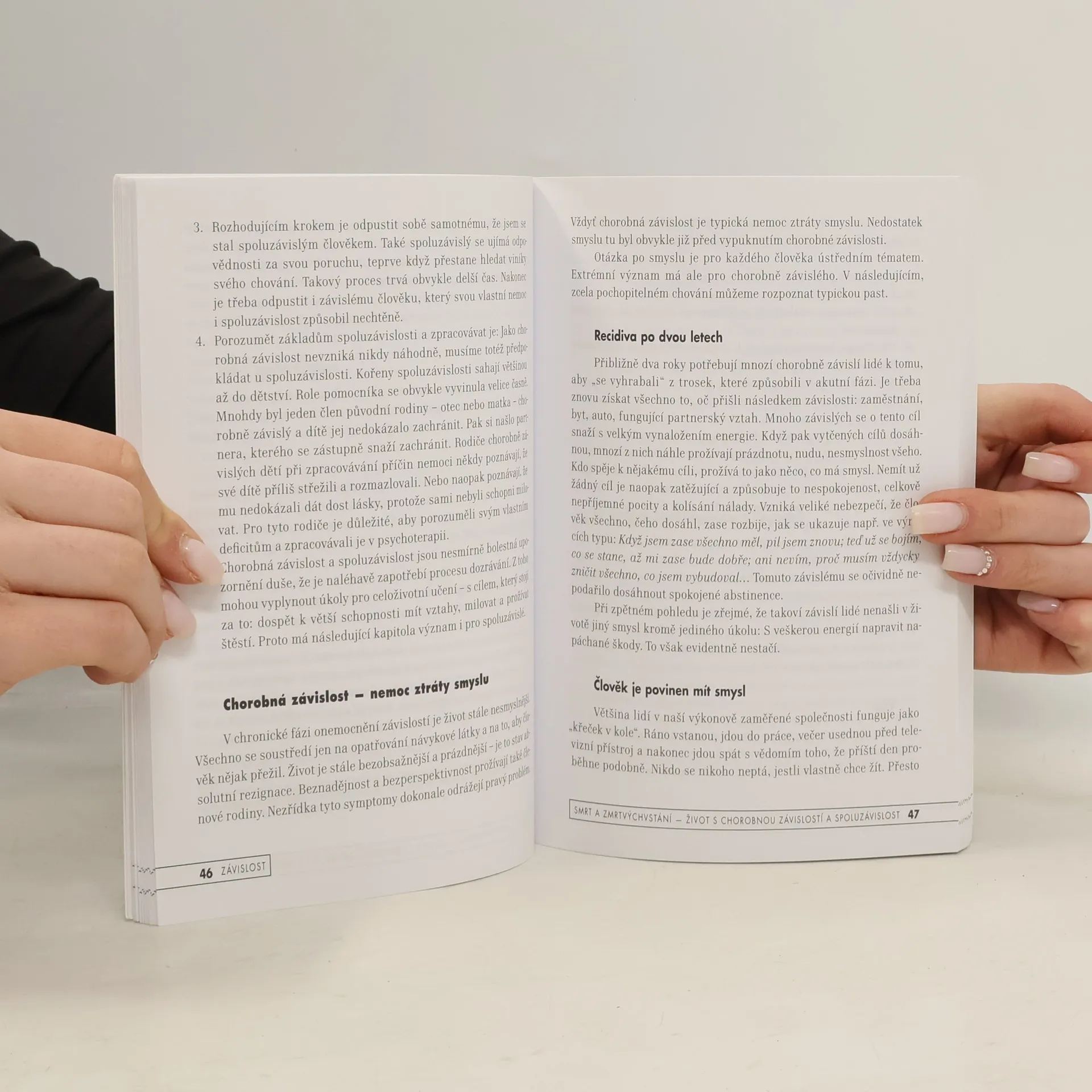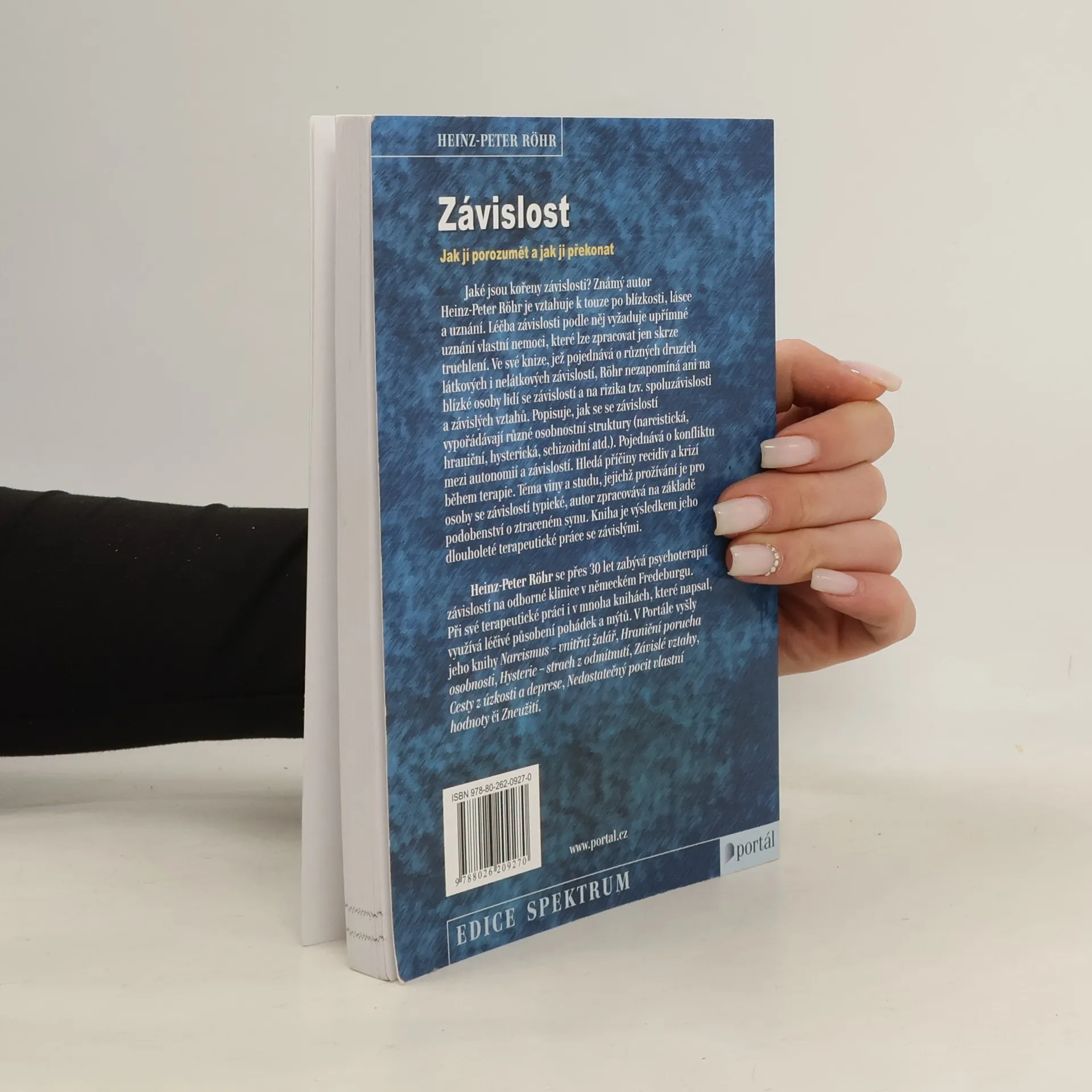 Podtitul: Jak jí porozumět a jak ji překonat. Jaké jsou kořeny závislosti? Známý autor Heinz-Peter Röhr je vztahuje k touze po blízkosti, lásce, uznání. Léčba závislosti podle něj vyžaduje upřímné uznání vlastní nemoci, které lze zpracovat jen skrze truchlení. Ve své knize, jež pojednává o různých druzích látkových i nelátkových závislostí, Röhr nezapomíná ani na blízké osoby lidí se závislostí a na rizika tzv. spoluzávislosti a závislých vztahů. Popisuje, jak se se závislostí vypořádávají různé osobnostní struktury (narcistická, hraniční, hysterická, schizoidní atd.). Pojednává o konfliktu mezi autonomií a závislostí. Hledá příčiny recidiv a krizí během terapie. Téma viny a studu, jejichž prožívání je pro osoby se závislostí typické, autor zpracovává na základě podobenství o ztraceném synu. Kniha je výsledkem jeho dlouholeté terapeutické práce se závislými. Heinz-Peter Röhr se přes 30 let zabývá psychoterapií závislostí na odborné klinice v německém Fredeburgu. Při své terapeutické práci i v mnoha knihách, které napsal, využívá léčivé působení pohádek a mýtů. V Portále vyšly jeho knihy Narcismus – vnitřní žalář, Hraniční porucha osobnosti, Hysterie – strach z odmítnutí, Závislé vztahy, Cesty z úzkosti a deprese, Nedostatečný pocit vlastní hodnoty, Zneužití.