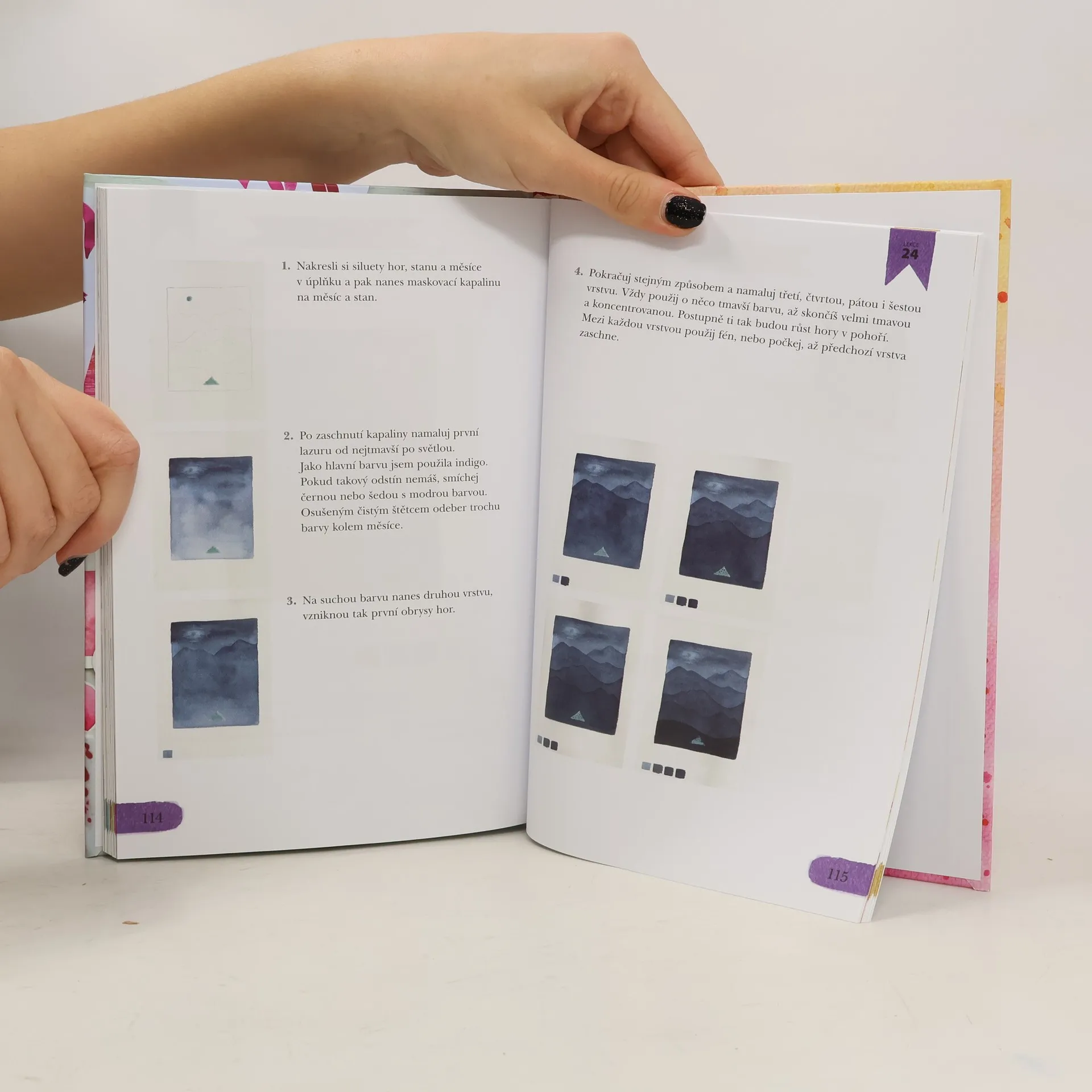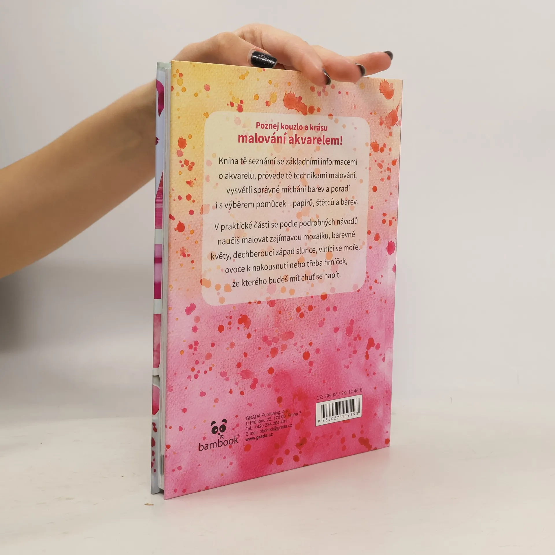 Poznejte kouzlo a krásu malování akvarelem!Kniha vás seznámí se základními informacemi o akvarelu, provede vás technikami malování, vysvětlí správné míchání barev a poradí i s výběrem pomůcek – papírů, štětců a barev.V praktické části se podle podrobných návodů naučíte malovat zajímavou mozaiku, barevné květy, dech beroucí západ slunce, vlnící se moře, ovoce k nakousnutí nebo třeba hrníček, ze kterého budete mít chuť se napít.