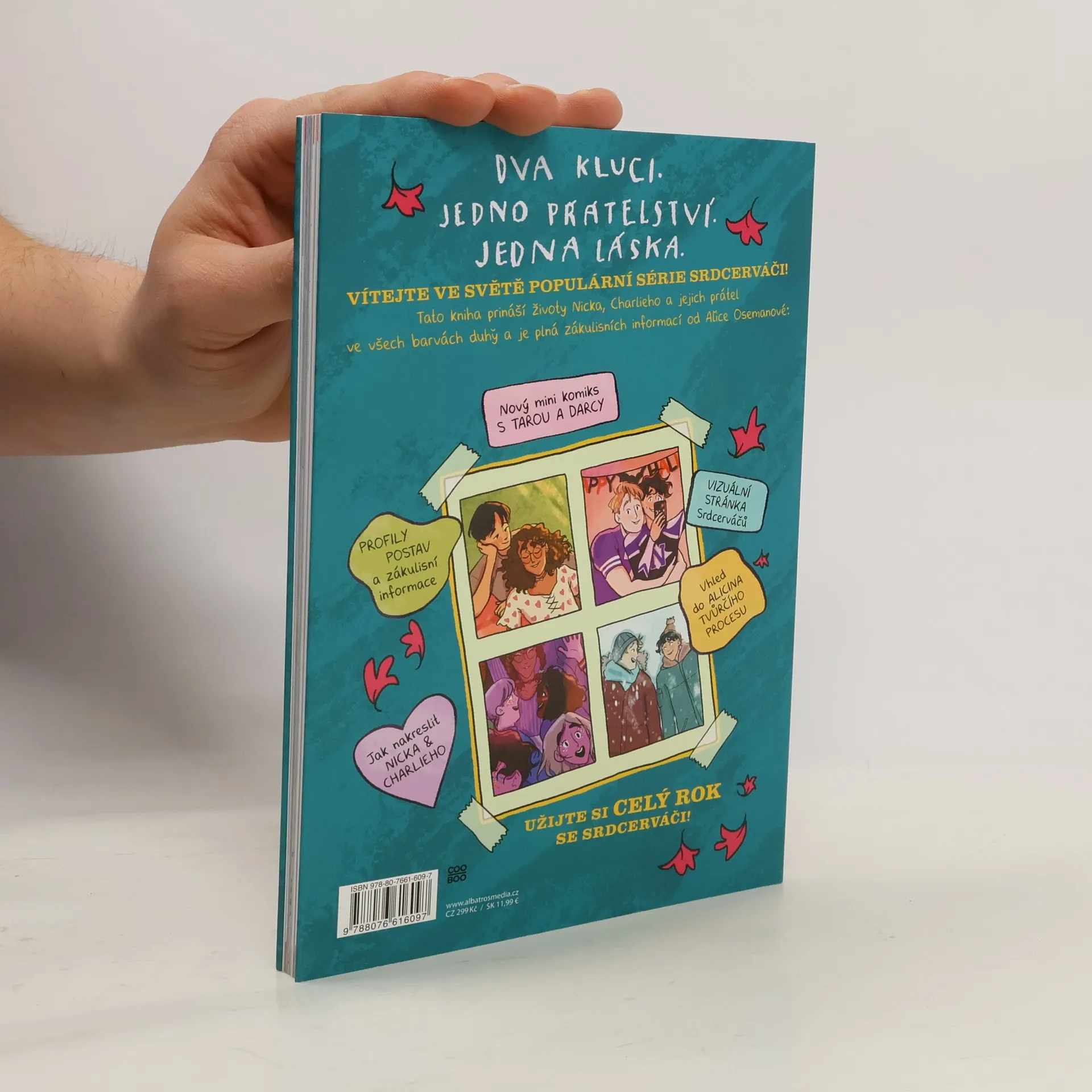 Všechna tajemství Srdcerváčů, tentokrát v barvě! Celobarevná ročenka ke komiksům Srdcerváči je kniha plná exkluzivního obsahu z vesmíru Nicka a Charlieho – včetně dosud nezveřejněných ilustrací, speciálního mini komiksu, ohlédnutí za Alicinou tvorbou Srdcerváčů v průběhu let, profilů jednotlivých postav, zákulisních informací a taky náhledů do Alicina kreativního procesu. To všechno vypráví komiksová verze vaší oblíbené autorky.Nutnost pro každého milovníka Nicka, Charlieho, jejich přátel a jejich příběhu!