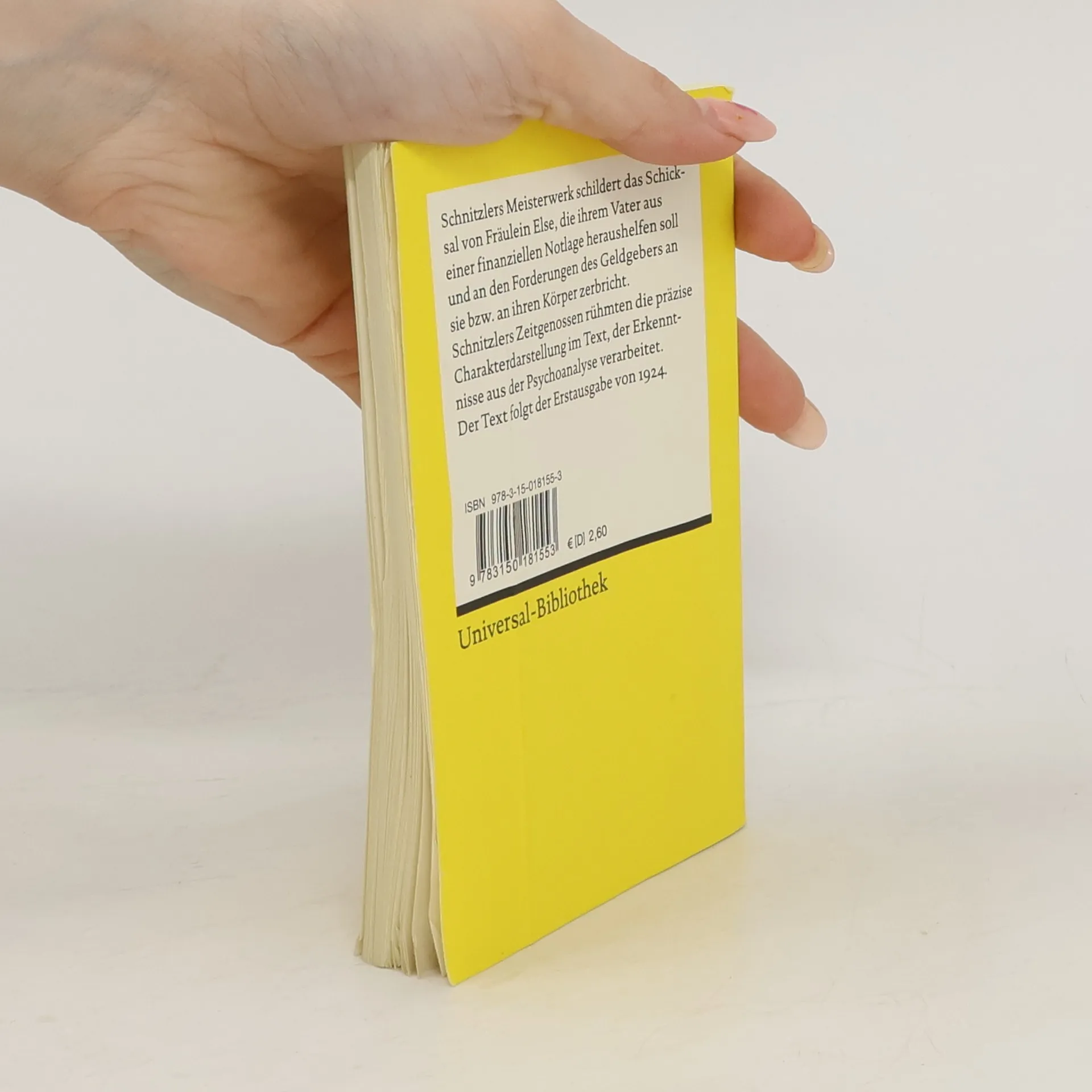 Arthur Schnitzlers wohl berühmteste Schilderung eines Frauenschicksals: Die neunzehnjährige Else soll ihren Vater vor dem drohenden Bankrott retten und zerbricht an den Forderungen des Geldgebers. Zeitgenossen des Autors rühmten die präzise Charakterdarstellung, die Erkenntnisse aus der Psychoanalyse verarbeitet.