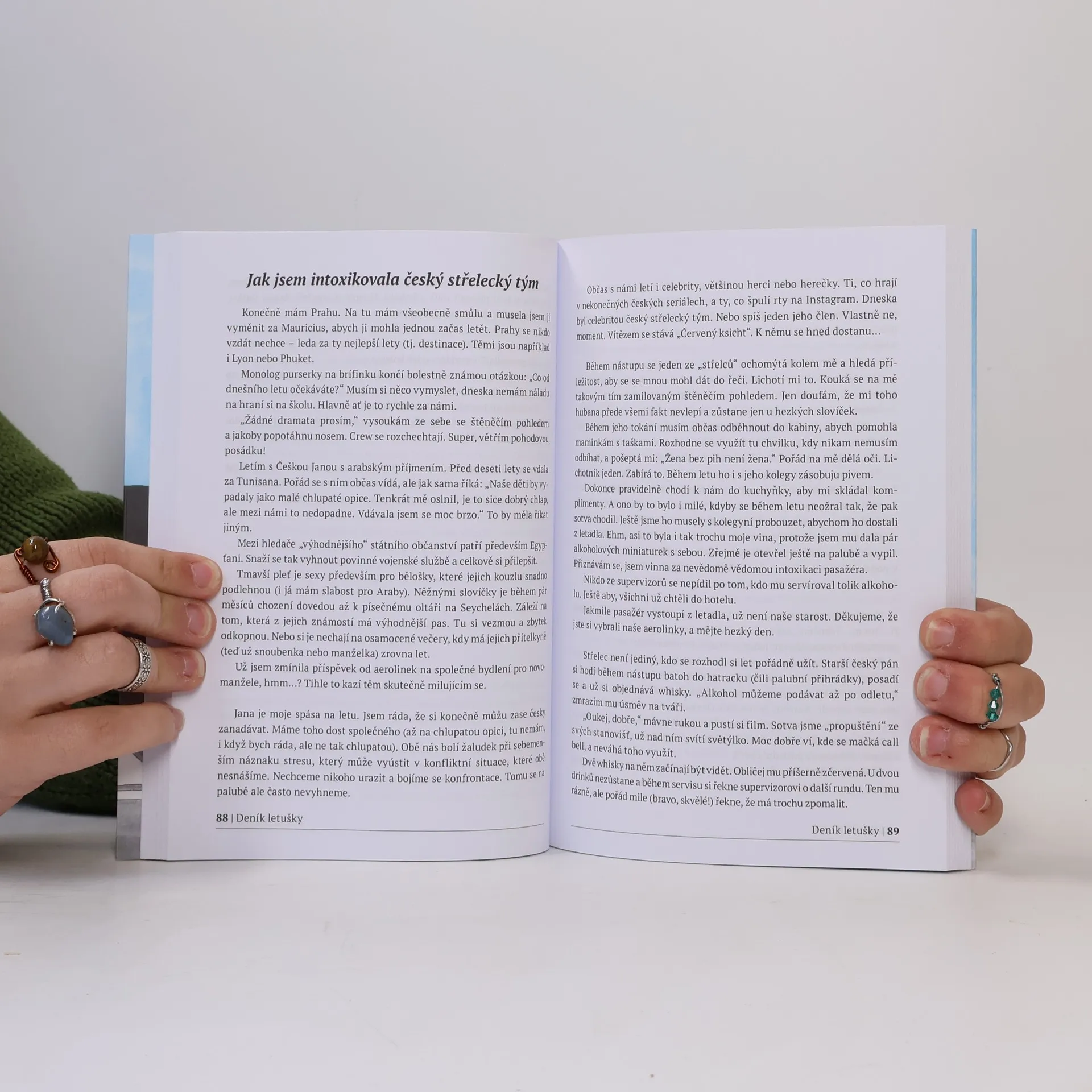 Tahle kniha není jen o vtipných historkách z paluby a ze života dubajské letušky. To, o co se s vámi chci podělit, ještě napsáno nikdy nebylo. Prozradím vám totiž, co letušky dělají, když se pasažéři nedívají. O čem mají zakázáno si na palubě povídat a jaké je probouzet se pokaždé v jiné posteli. O sexuálním harašení a poslušnosti. Povím vám o extrémních situacích, kdy jde o život, a o tom, jaké je pracovat v atmosféře strachu pro jedny z největších aerolinek na světě. Dám vám tipy, jak uspět u pohovoru. Dozvíte se, co je na tréninku na dubajskou letušku zábavné a co je naopak noční můra. Jaké je pracovat s nejrůznějšími národnostmi a kteří jsou ti nejhorší pasažéři. Od cestování do těch nejlepších destinací až po psychické obtíže, chuť to vzdát a to, jak se létá v době covidu.