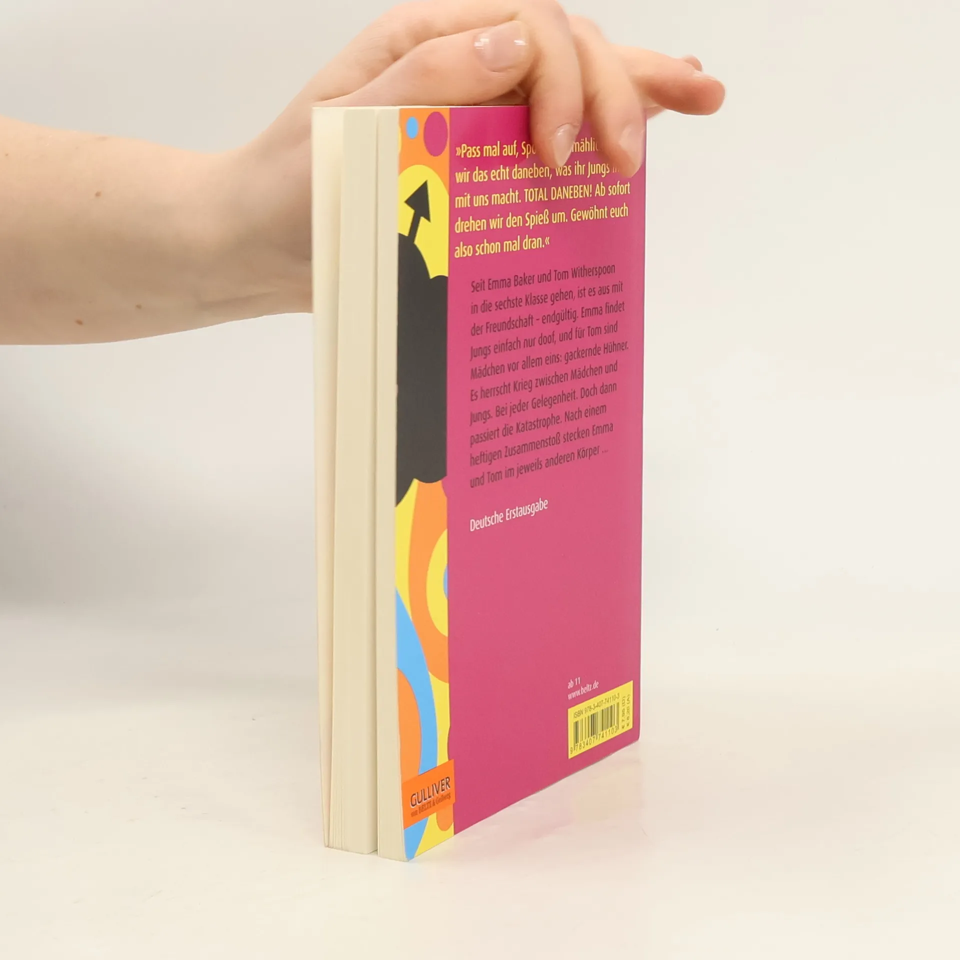 Einmal hin, einmal her – Mädchen oder Junge sein, das ist nicht schwer? Seit Emma und Tom aufs Gymnasium gehen, ist es aus mit der Freundschaft – endgültig. Es wäre nämlich total uncool, wenn Tom mit einem Mädchen ... und Emma mit einem Jungen ... Doch dann steckt Emma auf einmal in Toms Körper und Tom findet sich in Emmas Körper wieder. Ein mehrtägiger Spießrutenlauf beginnt, denn niemand darf was merken, weder Toms alberne Freunde, noch die zickigen Grrzillas, noch die Eltern und Lehrer ... Mit komödiantischer Leichtigkeit spielt der Autor mit Rollenklischees und Vorurteilen. Der Leser schlüpft mal in die eine, mal in die andere Rolle – und amüsiert sich. Bis der Spuk ein Ende hat.