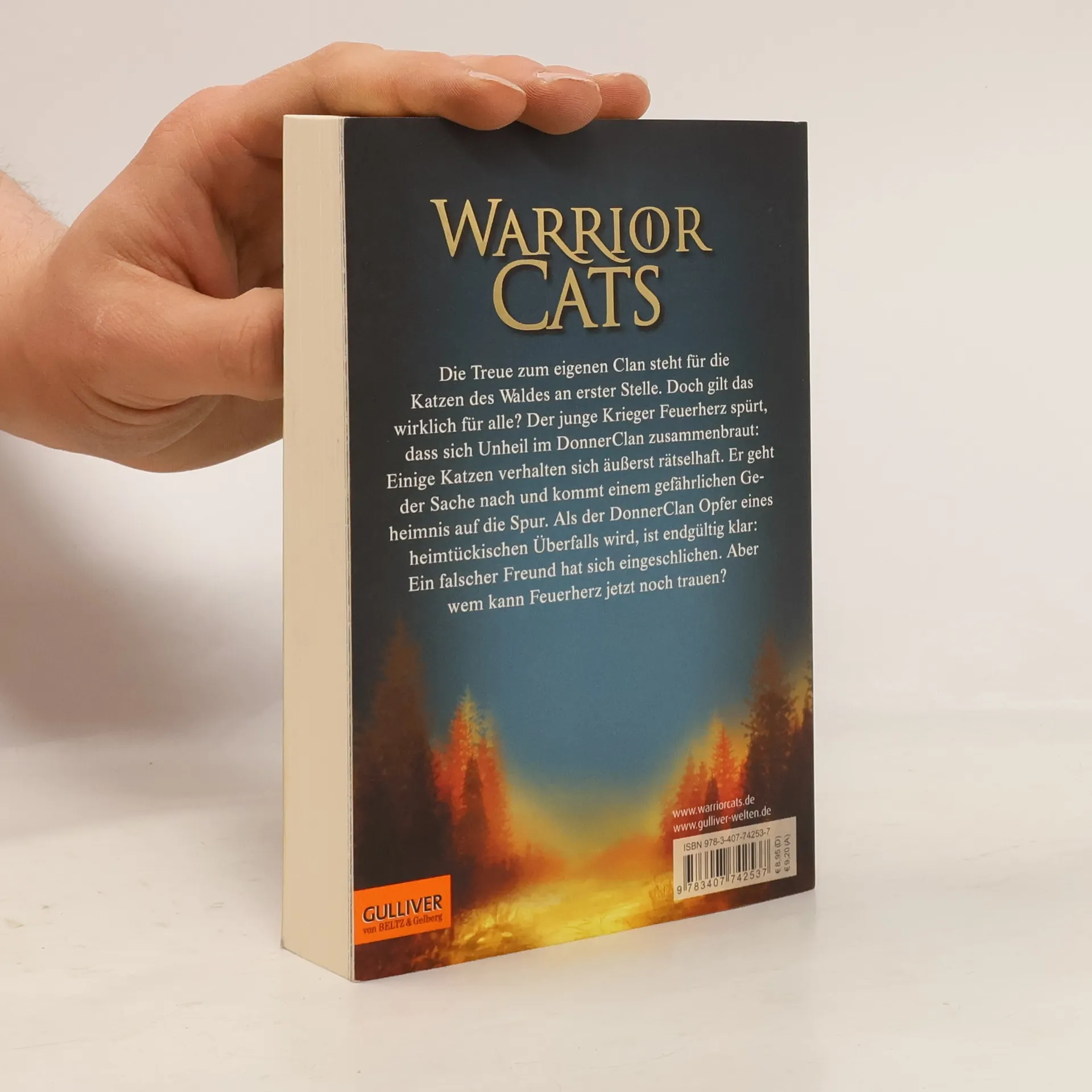 »Auch der dritte Band der Warrior Cats begeistert Jungen und Mädchen gleichermaßen.« Wir Eltern »Fantasy der ungewöhnlichen Sorte.« Buchjournal »Man kann sich der spannenden Geschichten um die Clan-Katzen nicht entziehen: Jeder Roman fesselt und lässt den Leser nicht mehr los.« Abenteuer & Phantastik Die Treue zum eigenen Clan steht für die Katzen des Waldes an erster Stelle. Doch gilt das wirklich für alle? Der junge Krieger Feuerherz spürt, dass sich Unheil im DonnerClan zusammenbraut: Einige Katzen verhalten sich äußerst rätselhaft. Er geht der Sache nach und kommt einem gefährlichen Geheimnis auf die Spur. Als der DonnerClan Opfer eines heimtückischen Überfalls wird, ist endgültig klar: Ein Verräter muss sich in den Clan eingeschlichen haben. Wem kann Feuerherz jetzt noch trauen?