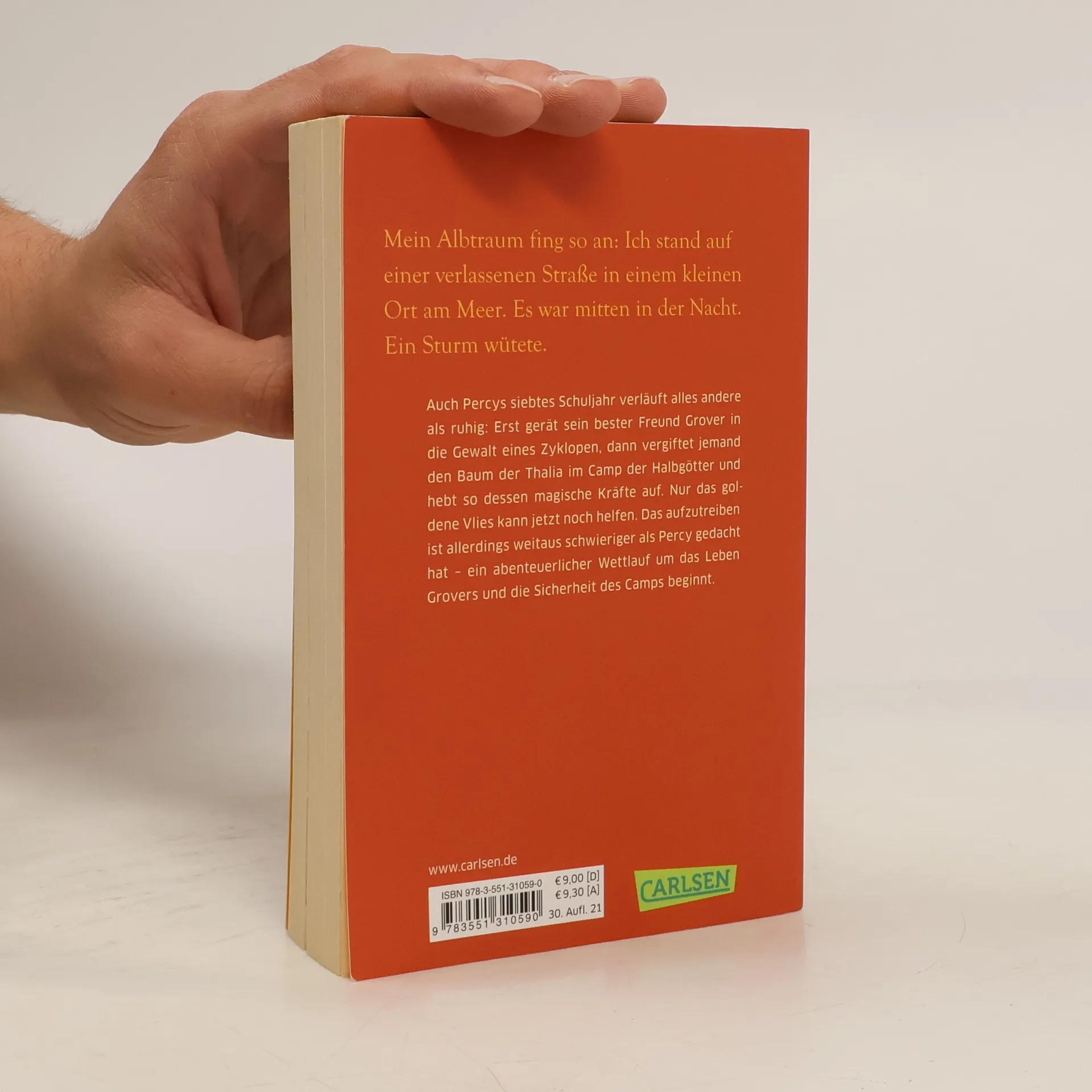 Auch Percys siebtes Schuljahr verläuft nicht wirklich ruhig: Erst gerät sein bester Freund Grover in die Gewalt eines Zyklopen, dann vergiftet jemand den Baum der Thalia im Camp der Halbgötter und hebt so dessen magische Kräfte auf. Nur das goldene Vlies kann jetzt noch helfen. Das aufzutreiben ist allerdings weitaus schwieriger als Percy gedacht hat - ein abenteuerlicher Wettlauf um das Leben Grovers und die Sicherheit des Camps beginnt.