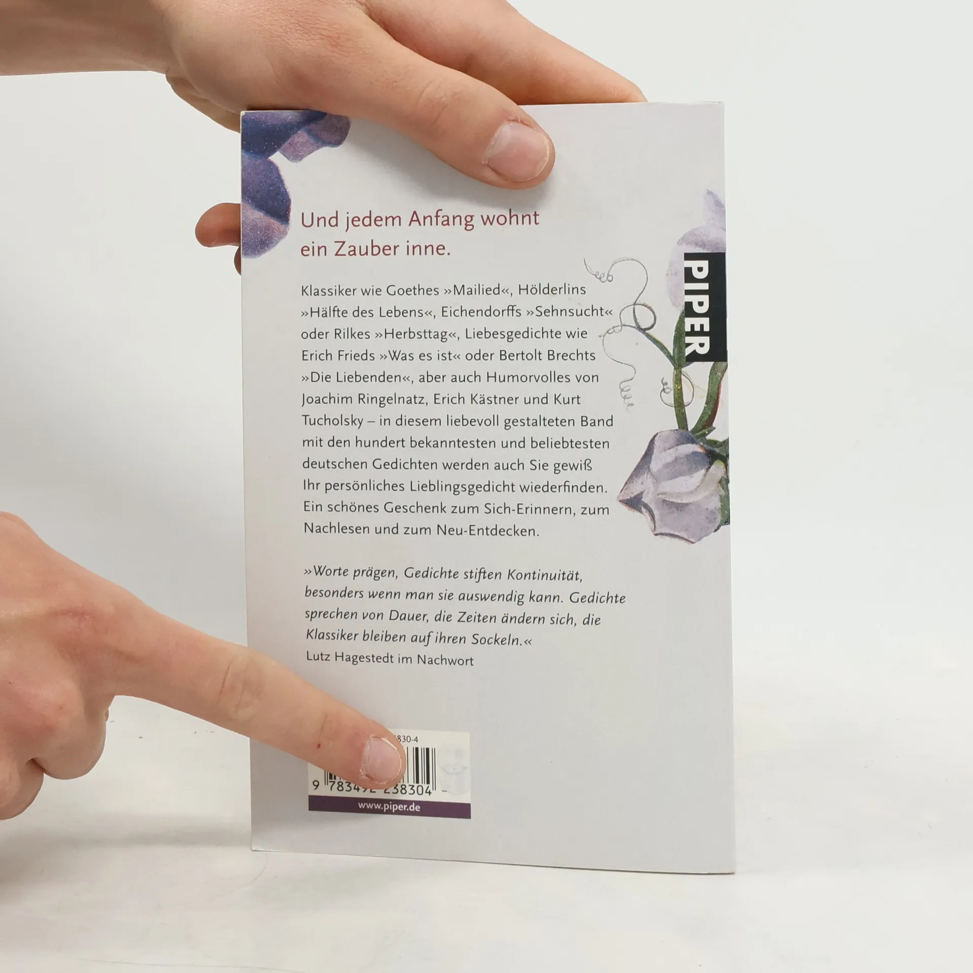 Und jedem Anfang wohnt ein Zauber inne. Klassiker wie Goethes »Mailied«, Hölderlins »Hälfte des Lebens«, Eichendorffs »Sehnsucht« oder Rilkes »Herbsttag«, Liebesgedichte wie Frieds »Was es ist« oder Brechts »Die Liebenden«, aber auch Humorvolles von Ringelnatz, Kästner und Tucholsky – in diesem liebevoll gestalteten Band mit den 100 bekanntesten und beliebtesten deutschen Gedichten werden auch Sie gewiss Ihr persönliches Lieblingsgedicht wiederfinden. Ein schönes Geschenk zum Sicherinnern, zum Nachlesen und zum Neuentdecken. »Worte prägen, Gedichte stiften Kontinuität, besonders wenn man sie auswendig kann. Gedichte sprechen von Dauer, die Zeiten ändern sich, die Klassiker bleiben auf ihren Sockeln« (Lutz Hagestedt im Nachwort).