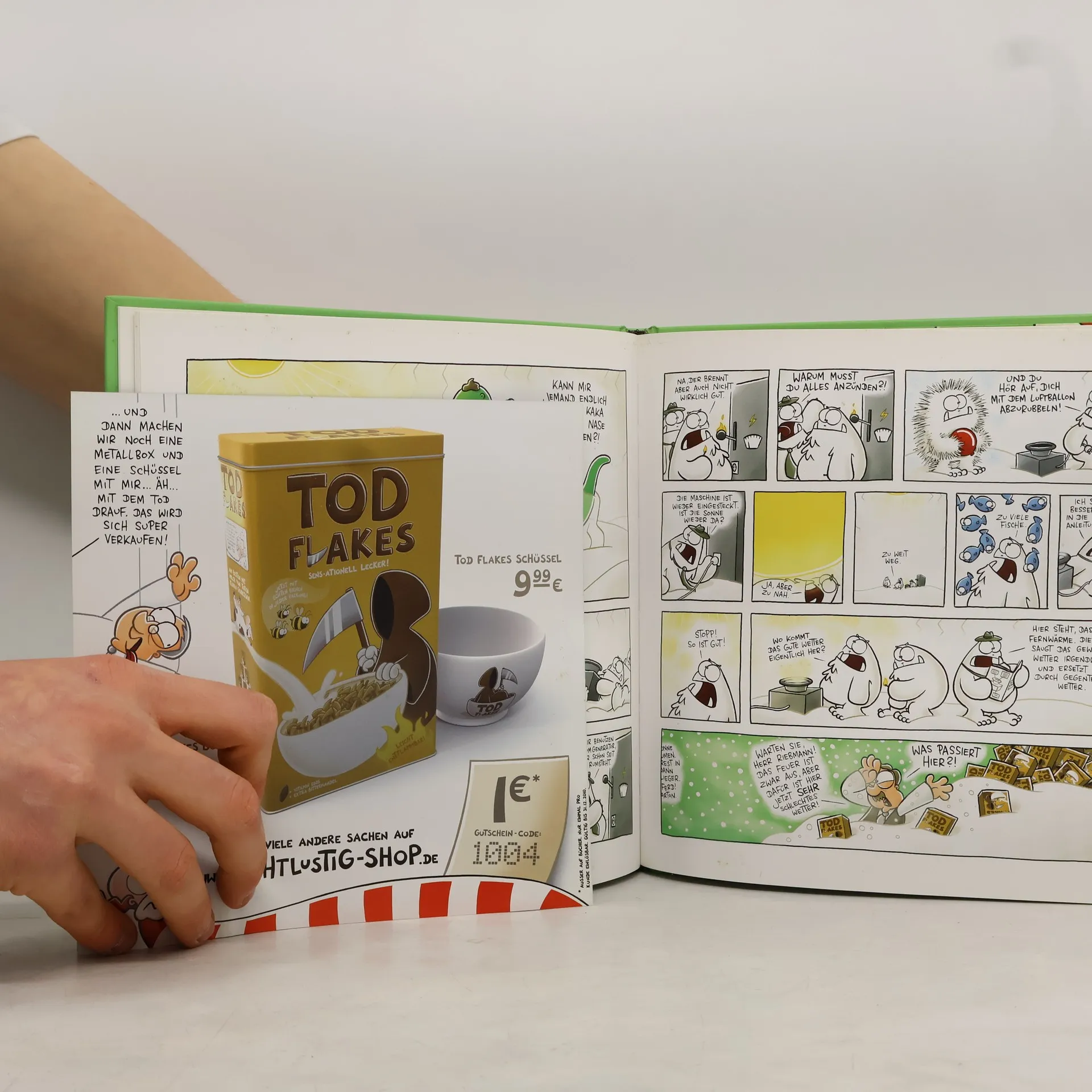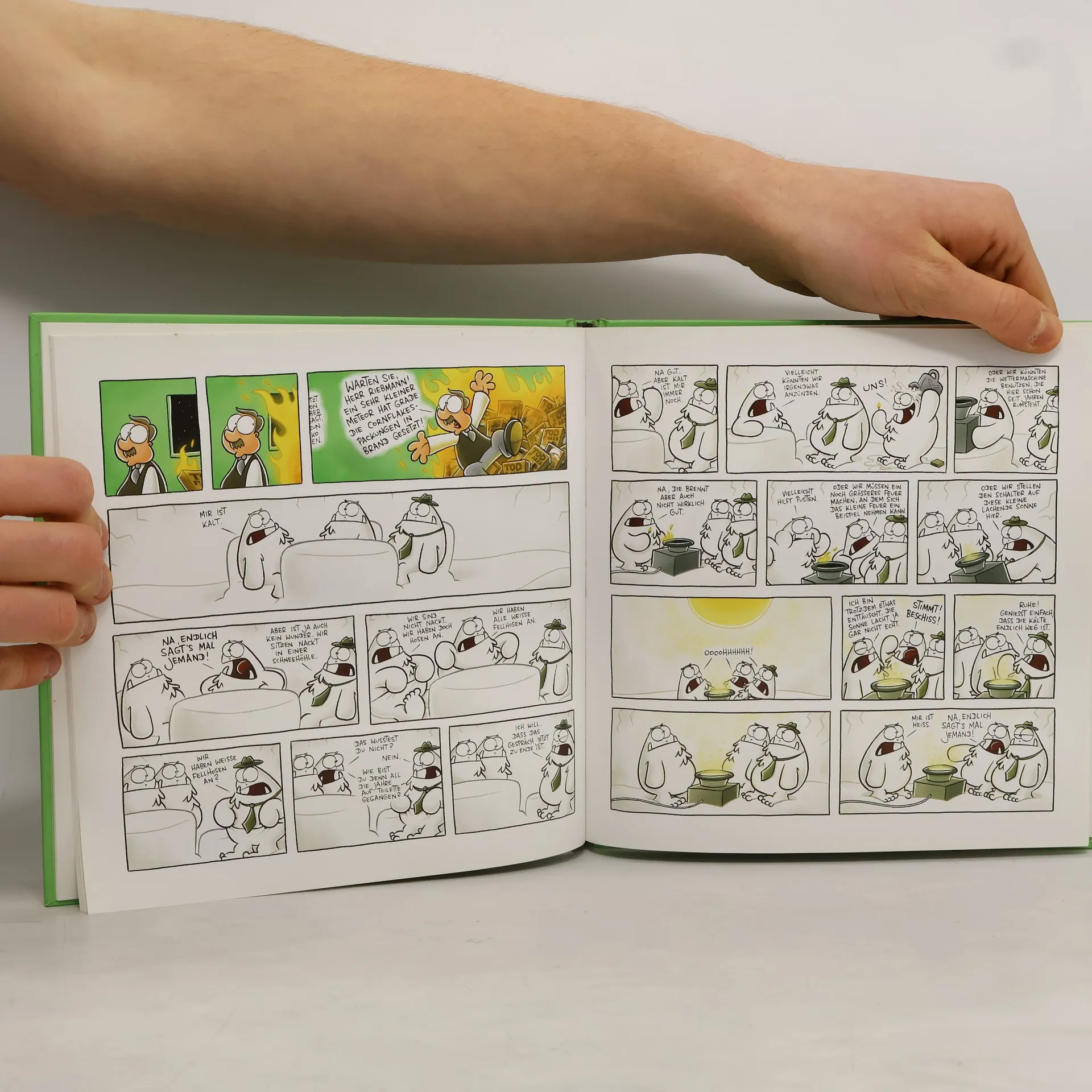 Über hundert Cartoons und verschiedene Episoden-Comics füllen den neuen Nichtlustig-Band. Yetis, Lemminge, Wissenschaftler und Herr Riebmann in der Wand geraten in unmögliche Situationen, aus denen sie sich mit noch unmöglicheren Lösungen zu retten versuchen.