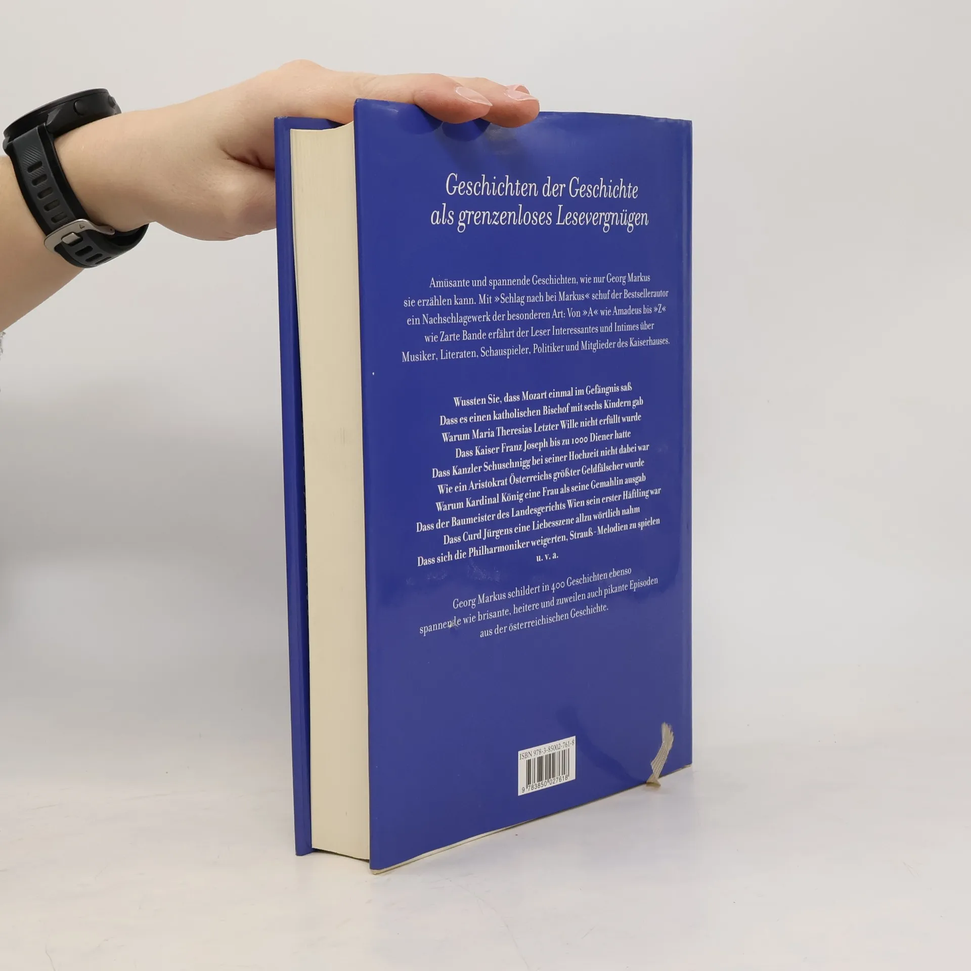 In seinem neuen Buch „Schlag nach bei Markus“ liefert Georg Markus ein österreichisches Nachschlagewerk der besonderen Art: Von „A“ wie Amadeus bis „Z“ wie Zarte Bande erzählt er 400 kleine Geschichten am Rande der großen Geschichte. So erfährt der Leser Interessantes, Heiteres und Intimes über Musiker, Literaten, Maler, Schauspieler, Politiker und Monarchen. Etwa, dass Mozart einmal im Gefängnis saß. Dass es einen katholischen Bischof mit sechs Kindern gab. Dass Kanzler Schuschnigg bei seiner eigenen Hochzeit nicht dabei war. Dass Kardinal König eine junge Frau als seine Gemahlin ausgab. Dass der Baumeister des Wiener Landesgerichts sein erster Häftling war. Dass Curd Jürgens eine Liebesszene im Wiener Volkstheater allzu wörtlich nahm. Dass Kaiser Franz Joseph bis zu 1000 Diener hatte u. v. a. Das Vorwort stammt von keinem Geringeren als William Shakespeare, der dagegen protestiert, dass die berühmte Zeile „Schlag nach bei Shakespeare“ von Georg Markus missbräuchlich verwendet wird...