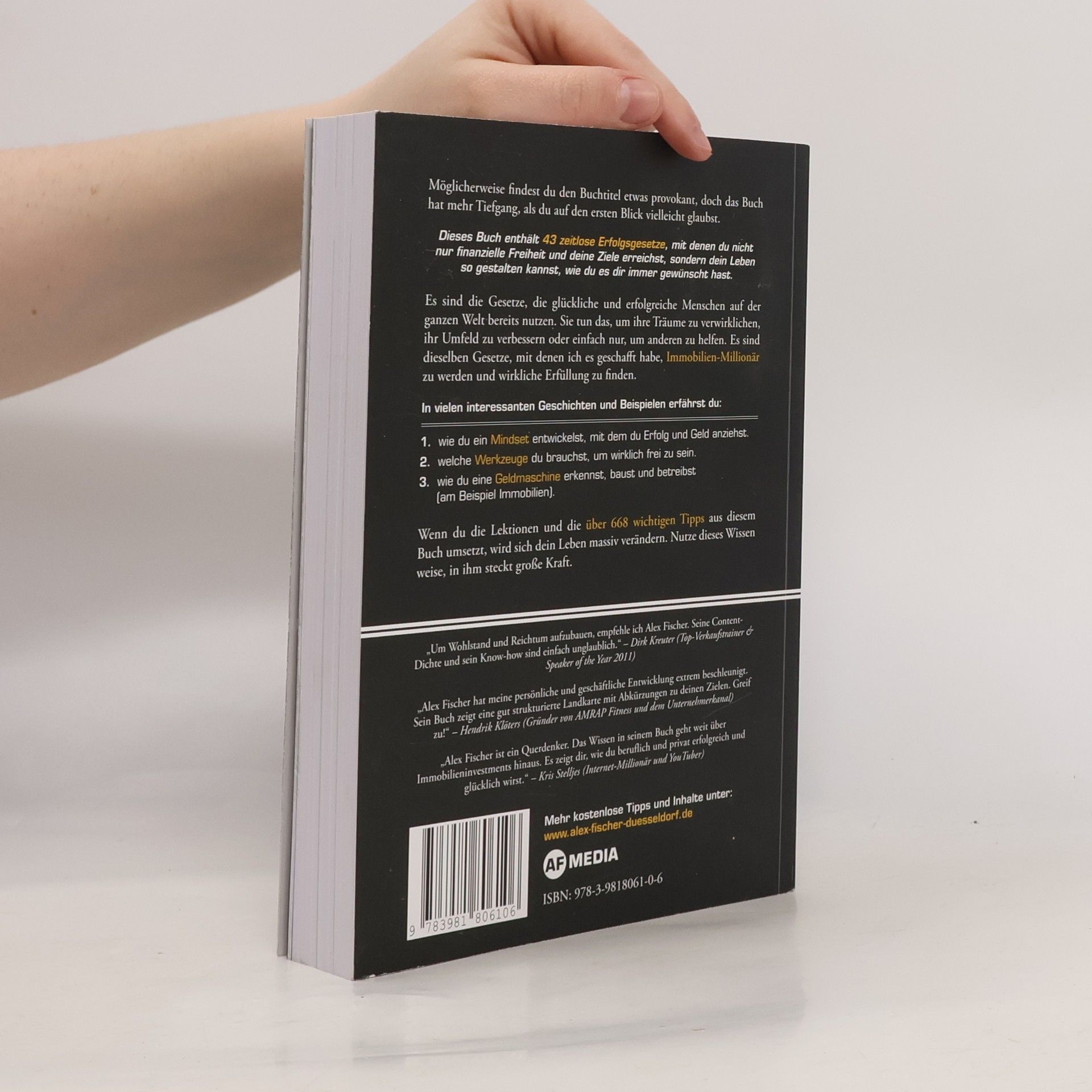 Reicher als die Geissens ist das erste und einzige Wohlstands-Lehrbuch weltweit, das die 43 wichtigsten Erfolgs-Fundamente Schritt für Schritt so inspirierend erarbeitet, dass du dich auch ohne Startkapital in 5 Jahren zum Immobilienmillionär transformieren kannst. Es enthält zeitlose Erfolgsgesetze, die dir helfen, finanzielle Freiheit zu erreichen und dein Leben nach deinen Wünschen zu gestalten. Diese Gesetze werden bereits von glücklichen und erfolgreichen Menschen genutzt, um ihre Träume zu verwirklichen und anderen zu helfen. In vielen Geschichten und anschaulichen Beispielen erfährst du unter anderem: - Wie du in fünf Jahren ohne Startkapital zum Immobilien-Millionär wirst. - Wie du die 43 Erfolgsgesetze verinnerlichst und ein Leben nach deinen Vorstellungen führst. - Wie du ein wandelnder Geldmagnet wirst, indem du die geheimen Geldgesetze befolgst. - Wie du ein einflussreiches Power-Netzwerk aufbaust und Celebrities sowie Influencer anziehst. - Wie du deine Stärken entdeckst und deine Berufung erkennst, um ein glückliches Leben zu führen. - Wie du schnell Eigenkapital und Cashflow generierst und passives Einkommen aufbaust. - Wie du Kapital, Zeit und Ressourcen optimal hebelst, um maximale Wirkung zu erzielen. Setze die Lektionen und über 668 Tipps um, und erlebe eine massive Veränderung in deinem Leben. Nutze dieses Wissen weise, denn es birgt große Kraft.