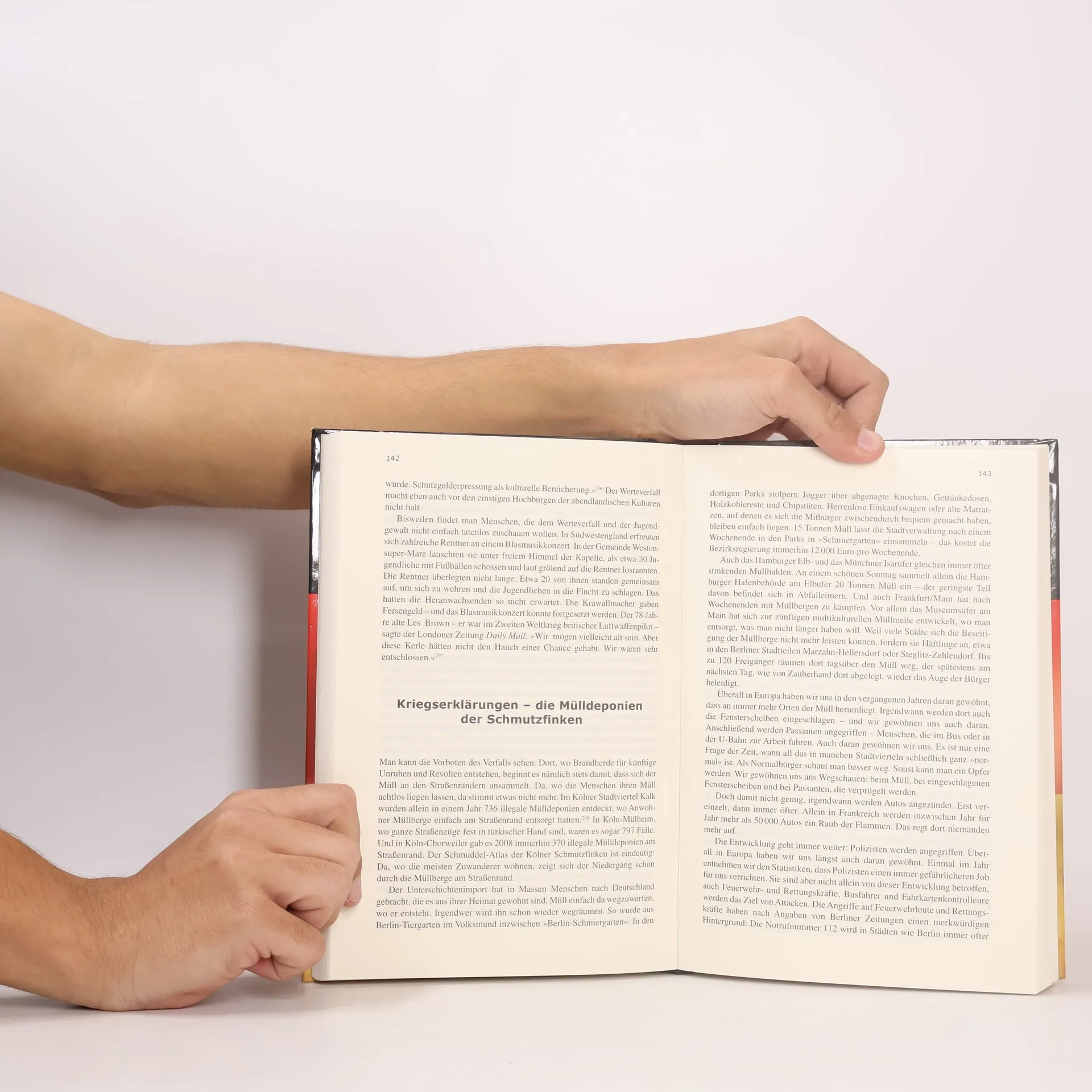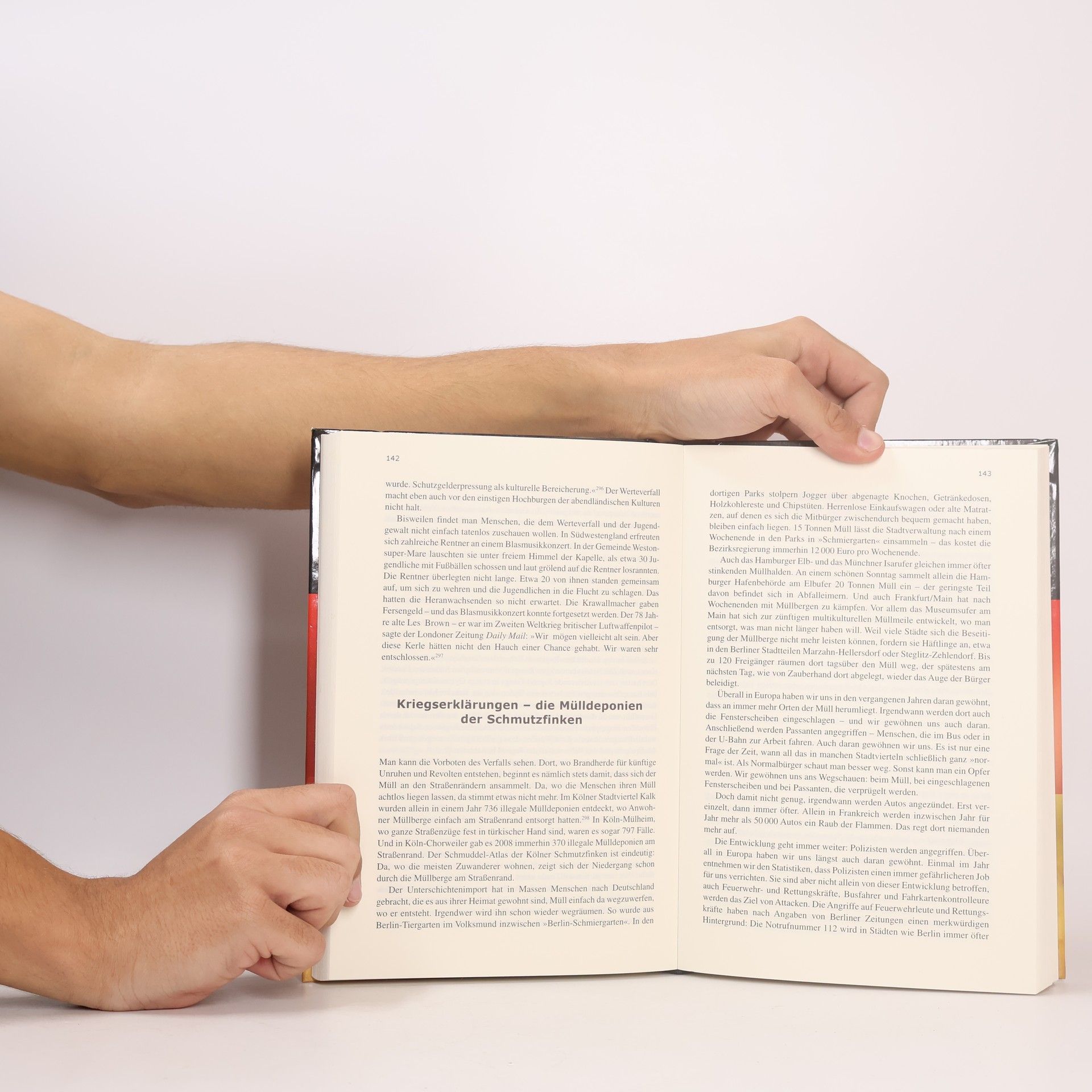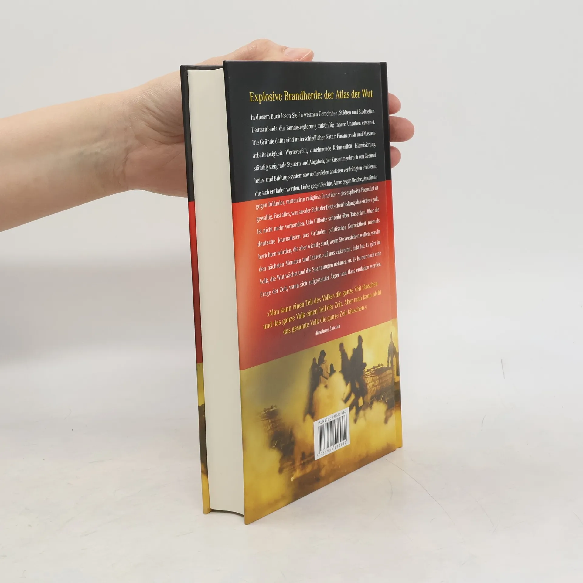 Bürgerkriegsszenen auf dem schwarzrotgoldenen Umschlag, plakative Überschriften, die "Multi-Kulti-Primaten", Rapper-"Gesindel" und "Schlappschwänze in Roben" verheißen, dazu ein beigelegtes Signalplakat mit potenziellen Bürgerkriegsstätten - mit suggestiver Emphase beschwört der Rechtspopulist, der seit Jahren einen heftigen Feldzug gegen die Islamisierung Europas führt, die Vision einer von Unruhen und Bürgerkriegen geprägten Zukunft herauf. Wirtschaftskrise, kulturelle Verarmung, ethnische Spannungen, dazu Werte- und Staatszerfall bezeichneten den Weg Deutschlands "in den Abgrund" und dann, so der Autor unter Verweis auf Großbritannien und andere Länder, "beginnt die Schlacht". Im letzten Kapitel Tipps zum Selbstschutz: "Überprüfen Sie Ihr äußeres Erscheinungsbild (...): Kann ein Fremder leicht den Eindruck bekommen, dass bei Ihnen etwas zu holen ist?" Im Detail durchaus sorgfältig recherchiert, erfordert das geschickt kompilierte Pamphlet des Ex-"FAZ"-Redakteurs, das als Bestseller durchaus zum öffentlichen Diskurs gehört, kritische Leser
