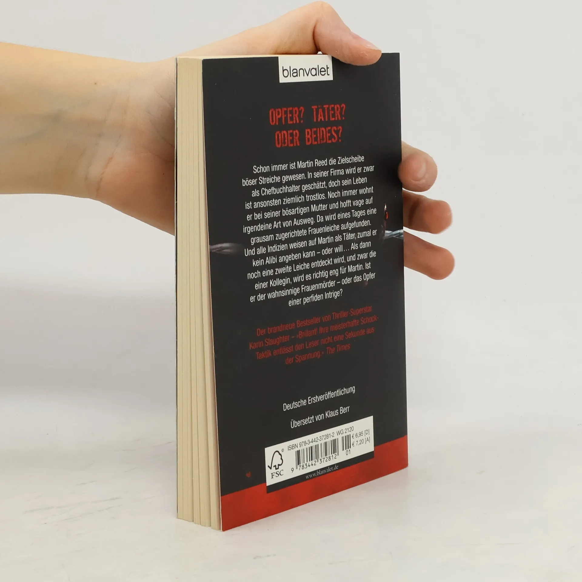 Der brandneue Bestseller von Karin Slaughter Zeitlebens wurde Martin Reed immer wieder das Opfer übler Intrigen. Zwar wird er als Chefbuchhalter in seiner Firma geschätzt, doch sein Dasein ist ziemlich trostlos – noch immer wohnt er bei seiner bösartigen Mutter und hofft vage auf irgendeine Art von Ausweg. Eines Tages wird die grausam zugerichtete Leiche einer Frau aufgefunden. Und alle Indizien weisen auf Martin als Täter, zumal er kein Alibi angeben kann – oder will ... Als dann noch eine zweite Frauenleiche entdeckt wird, die einer Kollegin, wird es richtig eng für Martin. Ist er tatsächlich der wahnsinnige Frauenmörder – oder nur ein fatal unverstandener Mann? Ein Meisterwerk der Spannungsliteratur – extrem fesselnd, psychologisch höchst raffiniert und mit atemberaubenden Wendungen bis zur letzten Zeile.