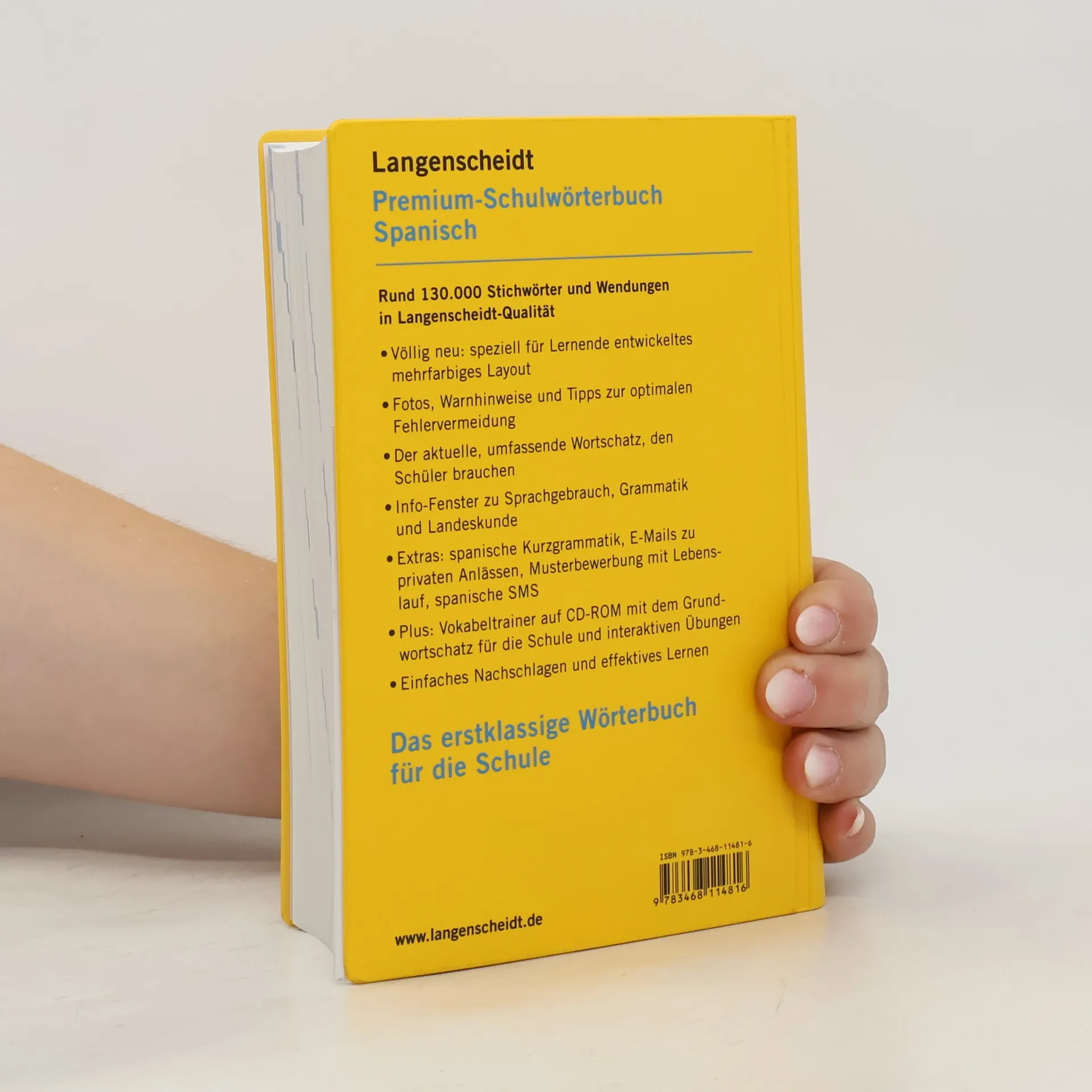 Hunderte Fotos zu Wörtern mit unterschiedlichen Bedeutungen. Warnhinweise bei typischen Fehlerquellen. Innovatives mehrfarbiges Layout zum schnellen Nachschlagen und effektiven Lernen. An Lesebändchen befestigtes Lesezeichen mit wichtigen Nachschlagehilfen. Breiter Allgemeinwortschatz mit vielen Neuwörtern. Extras: Musterbriefe und E-Mails zu Themen wie Bewerbung für ein Auslandspraktikum, spanische Kurzgrammatik.