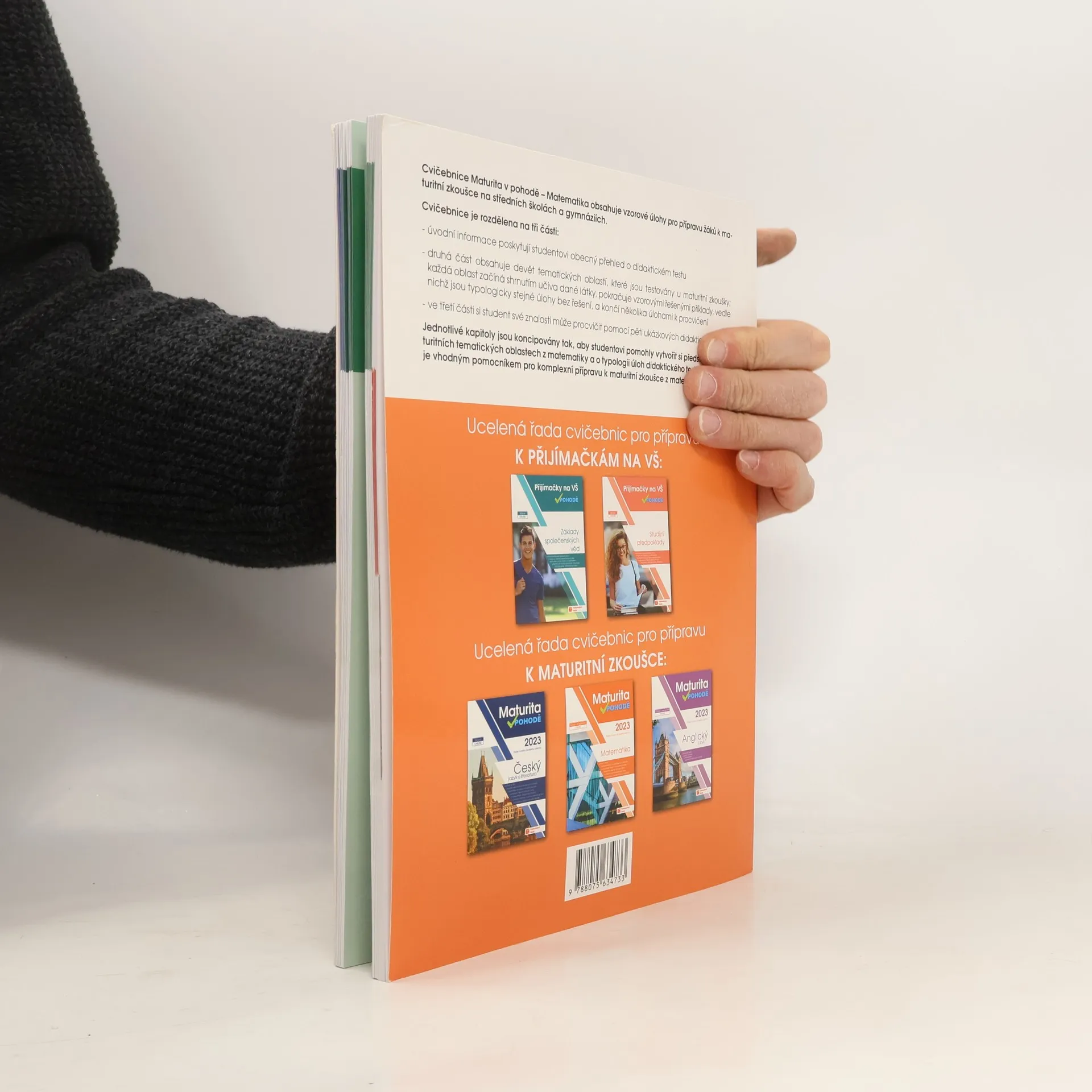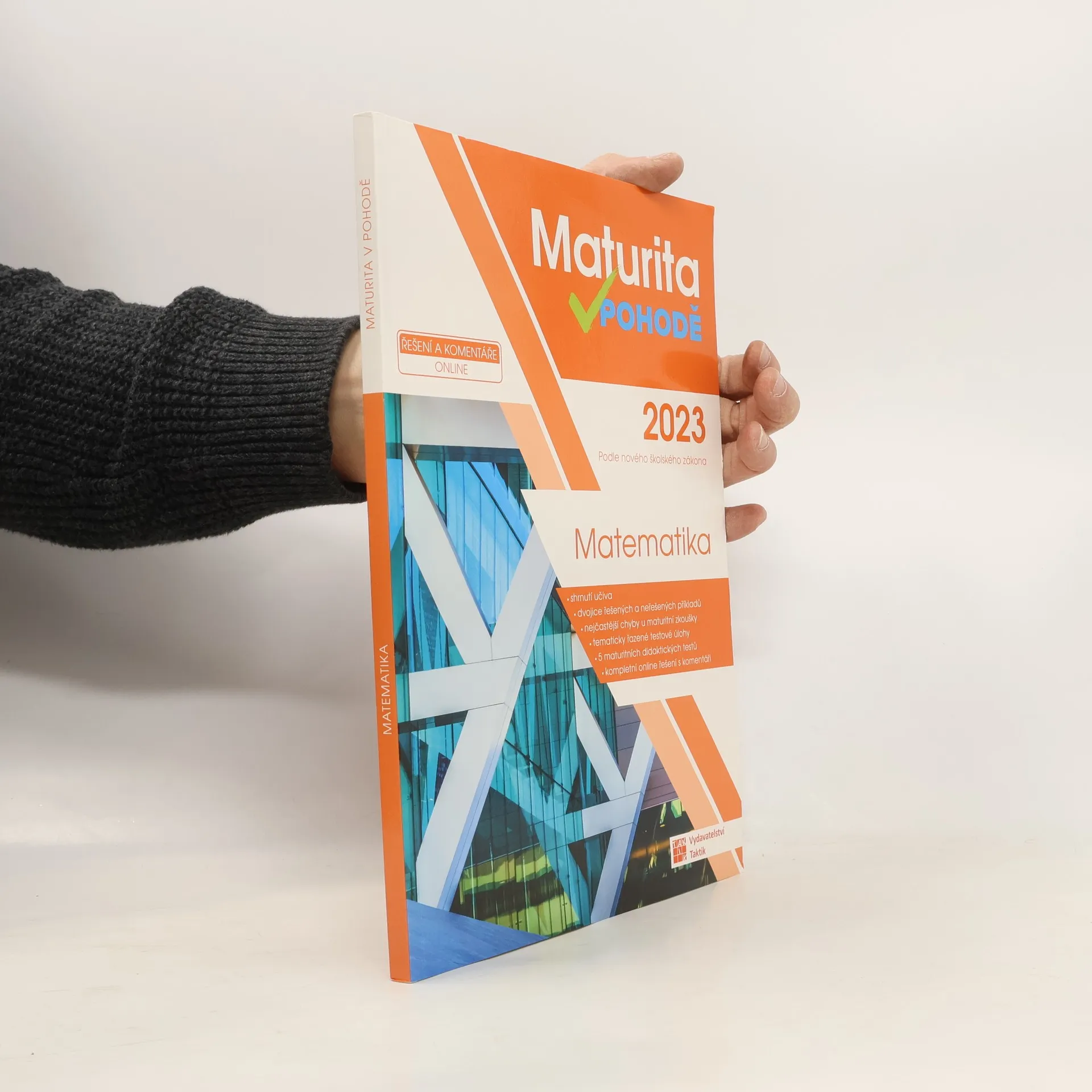 Cvičebnice Maturita v pohodě – matematika obsahuje materiály pro komplexní přípravu na Jednotou přijímací zkoušku (JPZ) na střední školy se studiem ukončeným maturitní zkouškou. Příručka obsahuje 9 testovacích okruhů. Každý okruh se skládá ze shrnutí učiva, aby si žák mohl zopakovat potřebnou látku, dvojic řešených a neřešených úloh, kde si žák může prohlédnout vyřešené a podle nich vypočítat ty neřešené, a tím se seznámit s typologií úloh v didaktickém testu. Následují vypracované úlohy, ve kterých se v minulých letech nejvíce chybovalo s radami, jak se chybám vyhnout. Okruh uzavírají úlohy k procvičení. Nakonec si své znalosti muže žák procvičit pomocí 5 ukázkových didaktických testu i s odpovědními archy. K cvičebnici je navíc e-learning s videi vysvětlujícími učivo a dalšími úlohami. Přístup získáte po zaregistrování a zadání přístupového kódu na studium.vpohode.cz, kde najdete vypracovaná řešení a odpovědní archy k úlohám z příručky.