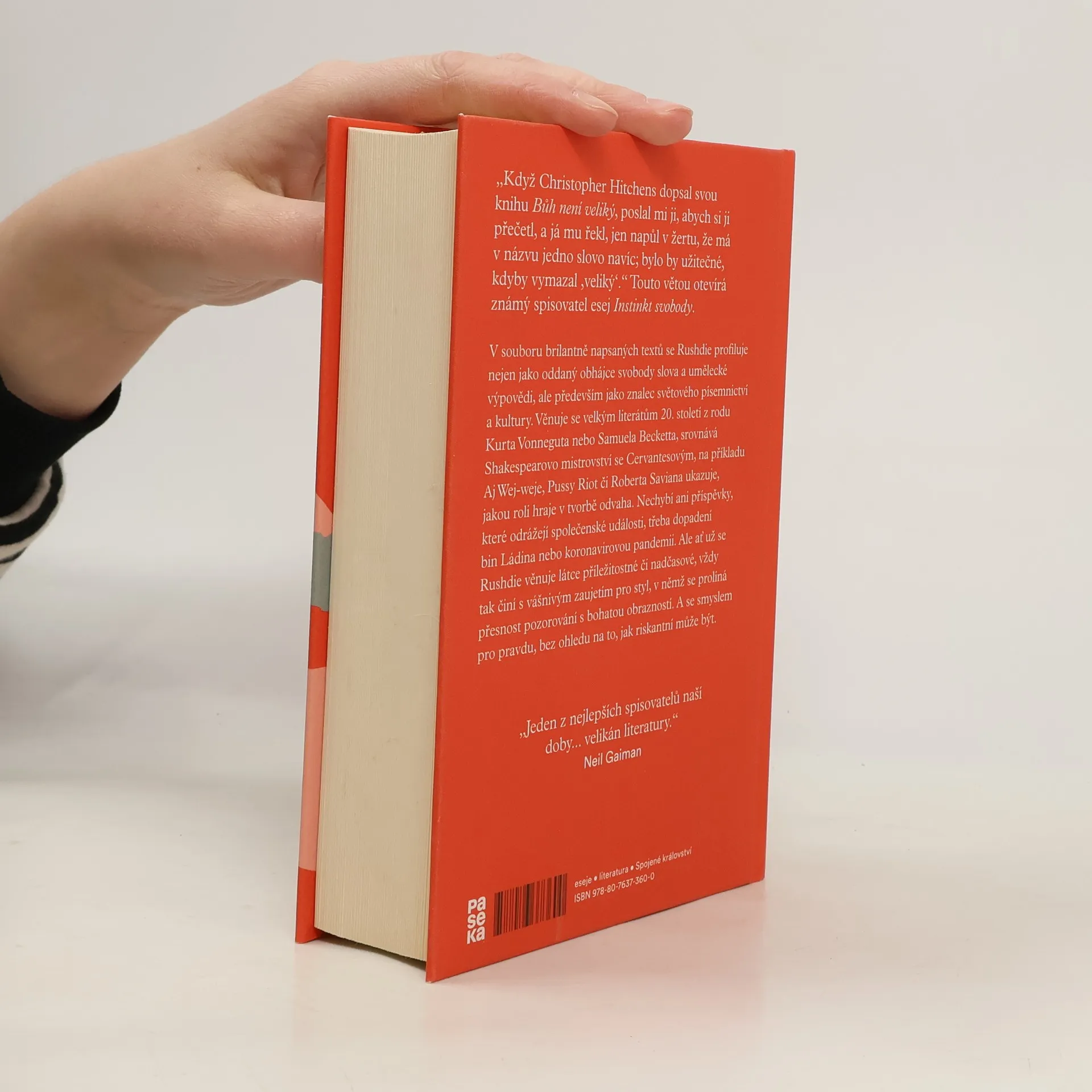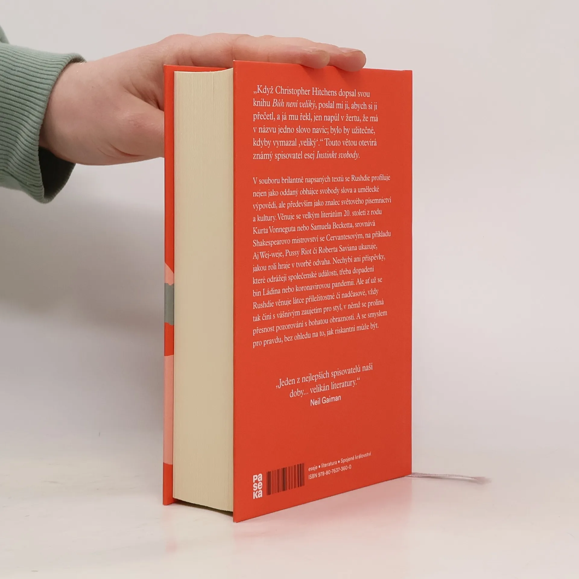 „Když Christopher Hitchens dopsal svou knihu Bůh není veliký, poslal mi ji, abych si ji přečetl, a já mu řekl, jen napůl v žertu, že má v názvu jedno slovo navíc; bylo by užitečné, kdyby vymazal ‚veliký‘.“ Touto větou otevírá známý spisovatel esej Instinkt svobody. V kolekci brilantně napsaných textů se Rushdie profiluje nejen jako oddaný obhájce svobody slova a umělecké výpovědi, ale především jako znalec světového písemnictví a kultury. Věnuje se velkým literátům 20. století z rodu Kurta Vonneguta nebo Samuela Becketta, srovnává Shakespearovo mistrovství se Cervantesovým, na příkladu Aje Wej-weje, Pussy Riot či Roberta Saviana ukazuje, jakou roli hraje v tvorbě odvaha. Nechybí ani příspěvky, které se věnují dopadení bin Ládina nebo koronavirové pandemii. Rushdie vždy píše s vášnivým zaujetím pro styl, ve kterém se prolíná přesnost pozorování s bohatou obrazností. A se smyslem pro pravdu, bez ohledu na to, jak riskantní může být.