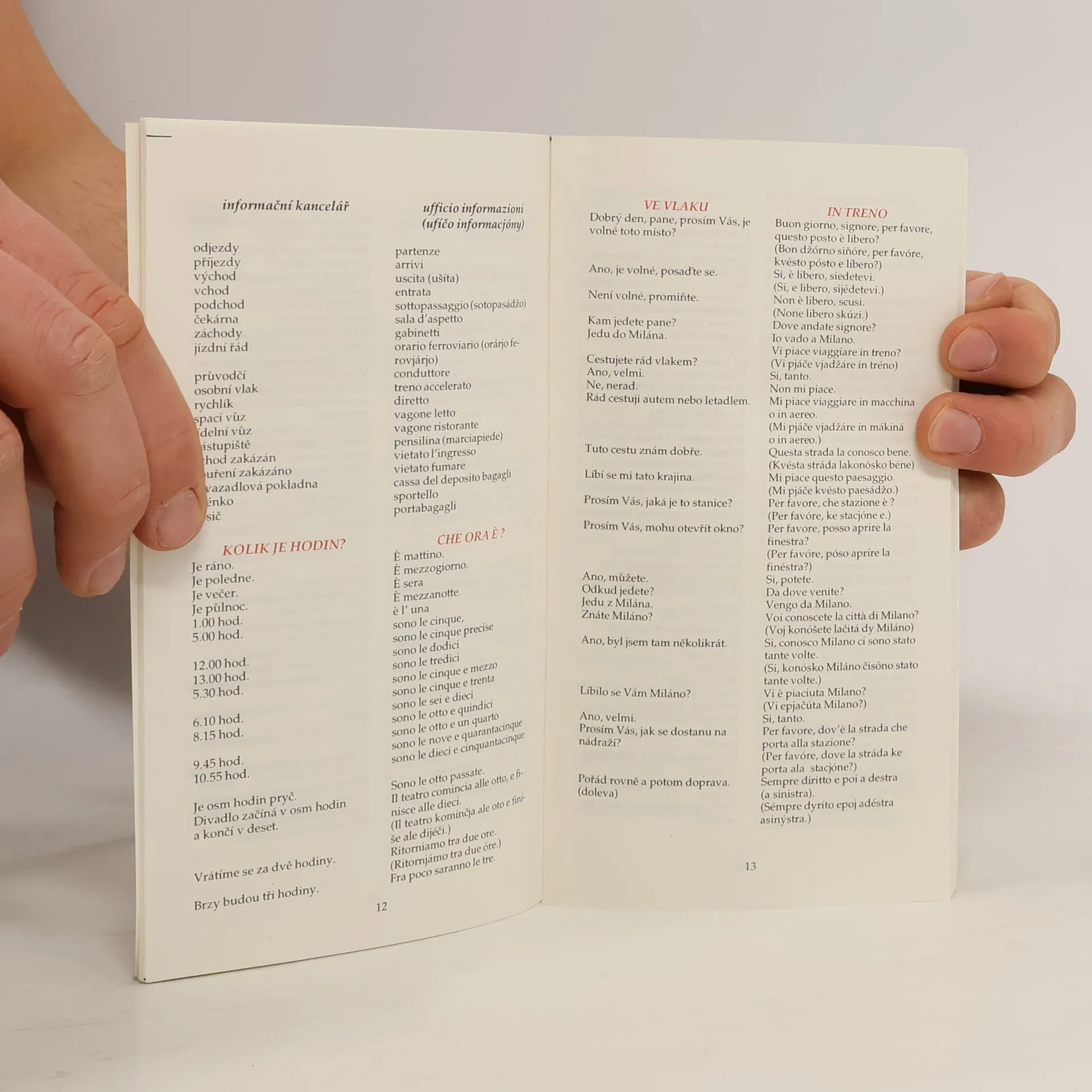 Stručná příručka italské konverzace pro situace při cestování (základní dorozumění na letišti/nádraží, ve vlaku, u lékaře, na policii, v hotelu, v restauraci atd.). Doplněno informací o italské výslovnosti a o časování důležitých sloves. Nechybí dokonce přehled italských regionů aitalských vín.
