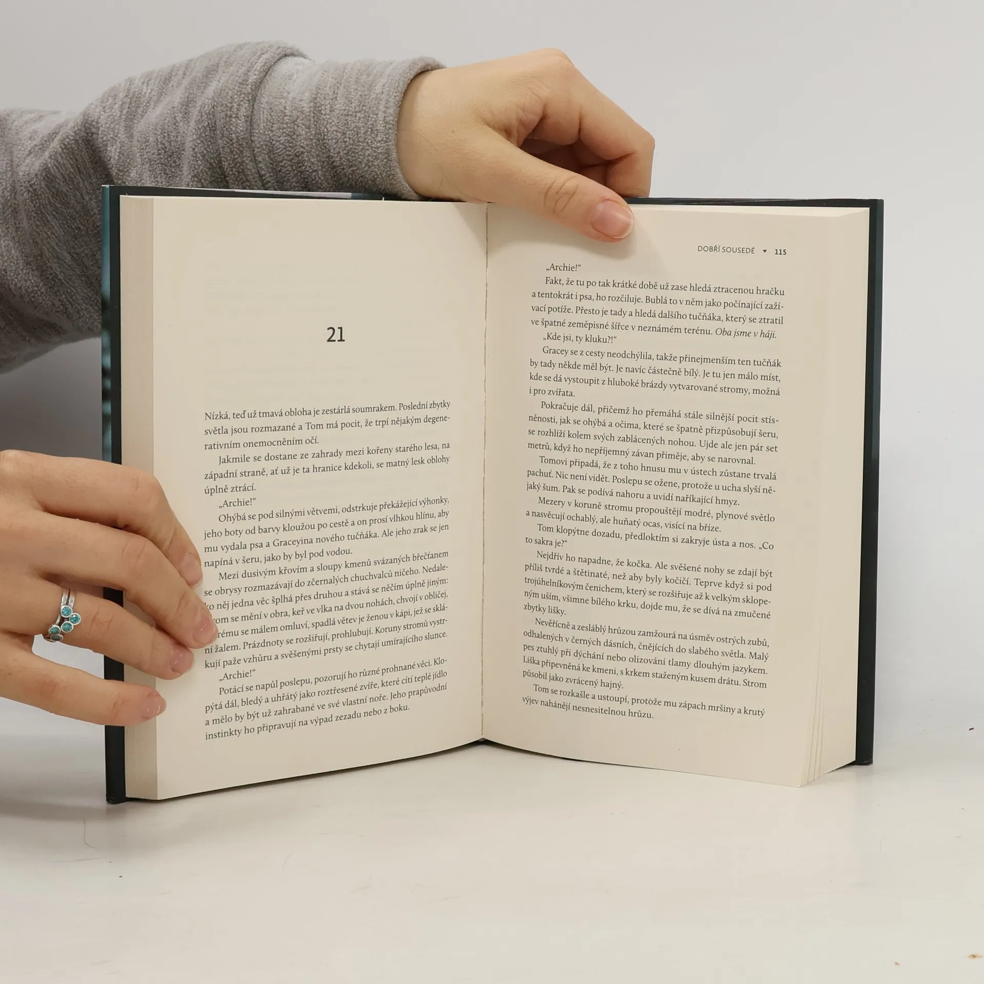 Peněz je málo a jejich nový domov potřebuje rekonstrukci. Nachází se daleko na venkově anglického jihozápadu a na konci jeho zahrady se rozprostírá prastarý les. Tom a jeho rodina jsou na míle daleko od všech známých. Jeho žena Fiona nikdy nebyla přesvědčená, že koupě domu v aukci, který spolyká spoustu peněz, byla dobrý nápad. Nejen proto, že v něm předchozí majitel spáchal sebevraždu. A nikdo nedokáže vysvětlit proč.Sotva překročí práh a už během několika dní začnou nepřátelské výměny se starším párem ze sousedního domu. Tomovy sny o budoucím štěstí se začínají kvůli eskalujícím rozbrojům rozplývat. Tom je čím dál izolovanější a utrápenější, riskuje ztrátu domova, těch nejbližších i svého rozumu. Protože přece jen blázen by si mohl myslet, že ti podivíni na druhé straně živého plotu mají nadpřirozené schopnosti.