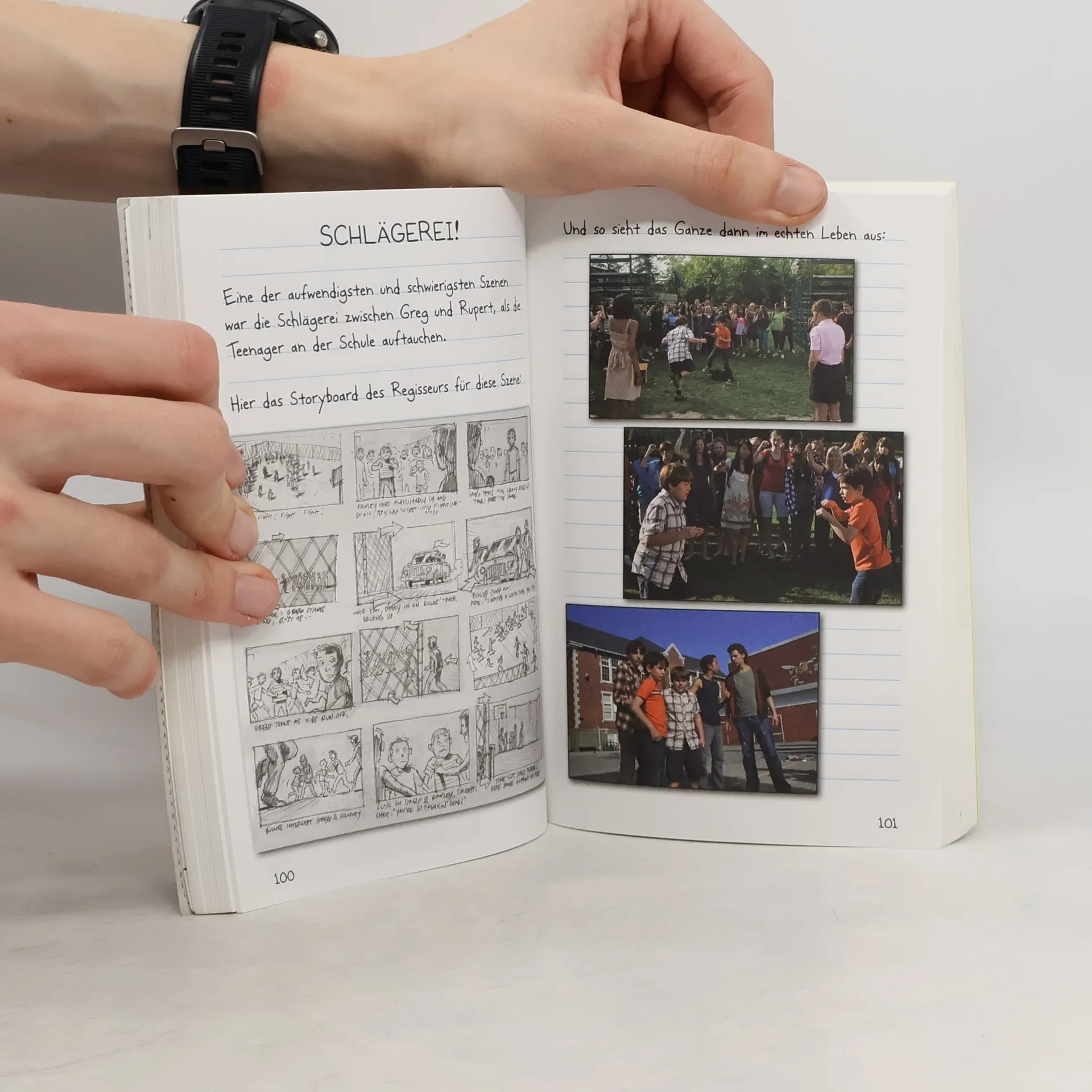 Wer sich immer schon mal gefragt hat, wie ein Film gemacht wird, der ist nicht allein. Dem Autor und Illustrator Jeff Kinney gings nicht anders. Als die 20th Century Fox in Hollywood seinen Bestseller „Gregs Tagebuch“ zu einem Realfilm umsetzte, war die Chance gekommen. Licht ins Dunkel zu bringen. Jeff Kinney konnte miterleben, wie die Bilder aus seinem Buch das Laufen lernen und wie aus einem Buch ein erfolgreicher Kinofilm wird. Das alles hat er in seiner unvergleichlich lustigen und komischen Art aufgeschrieben und -gezeichnet. Und so können alle großen und kleinen Fans von Greg mit ihm hinter die Kulissen von Hollywood schauen. Von der ersten bis zur letzten Seite voll mit Fotografien, Drehbuchseiten, Storyboard-Sketchen, lustigen Kulissen- und Kostümbildern sowie Original-Zeichnungen von Jeff Kinney speziell für diesen Band ist es das ideale Begleitbuch zum Film und ein weiterer genialer GREG-Lesespaß!