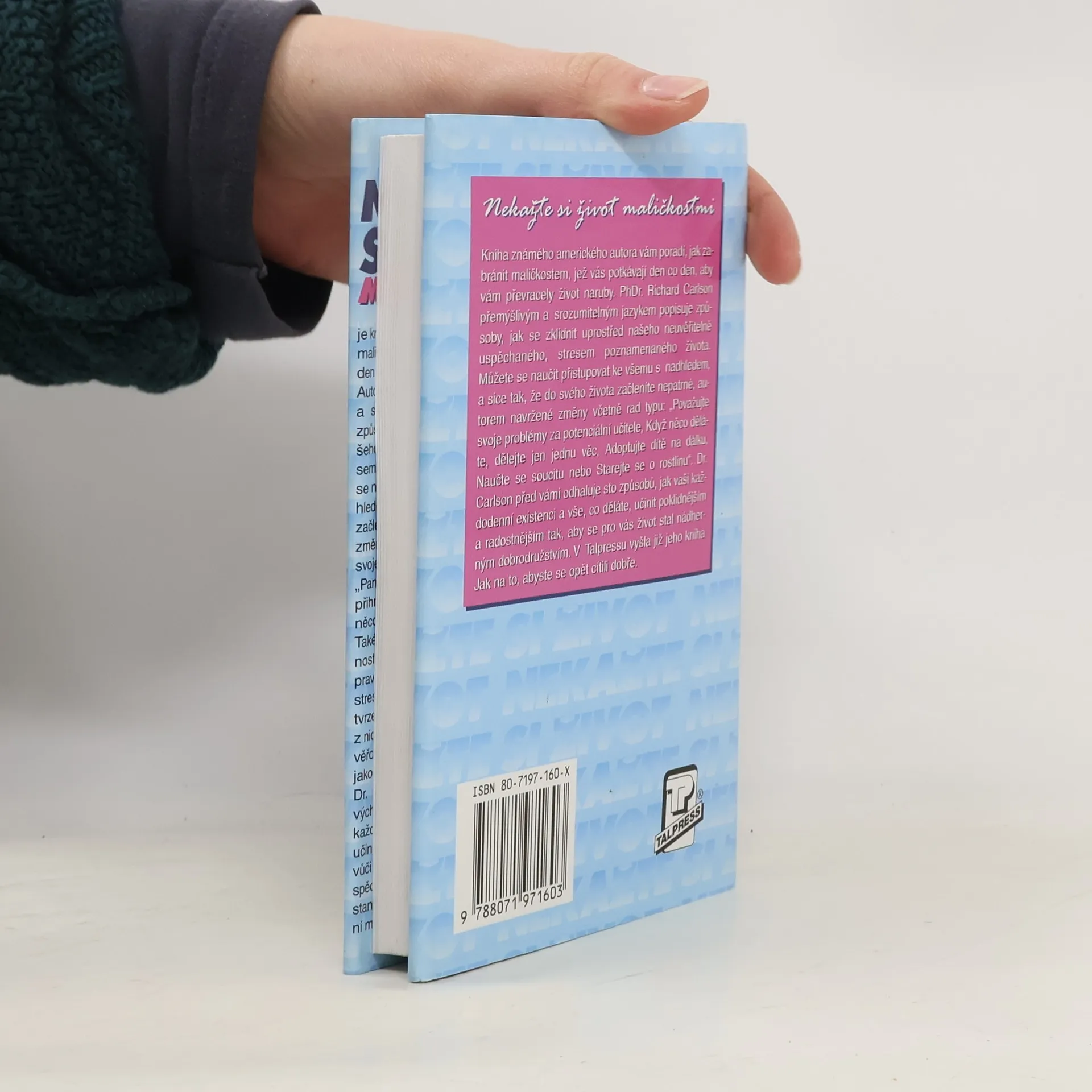 Kniha známého amerického autora vám poradí, jak zabránit maličkostem, jež vás potkávají den co den, aby vám nepřevracely život naruby. PhDr. Richard Carlson přemýšlivým a srozumitelným jazykem popisuje způsoby, jak se zklidnit uprostřed našeho neuvěřitelně uspěchaného, stresem poznamenaného života.