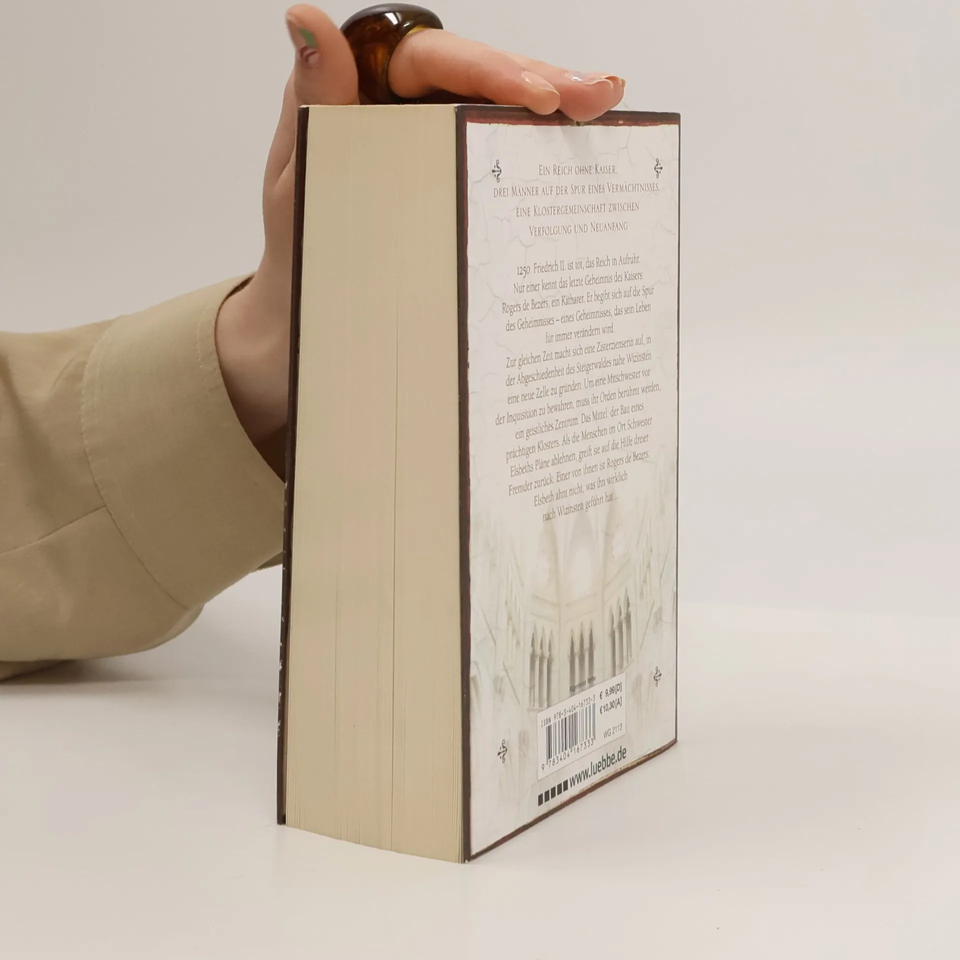 1250. Friedrich II. ist tot, das Reich in Aufruhr. Nur einer kennt das letzte Geheimnis des Kaisers: Rogers de Bezers, ein Katharer. Er begibt sich auf die Spur des Geheimnisses, das sein Leben für immer verändern wird. Zur gleichen Zeit macht sich eine Zisterzienserin auf, in der Abgeschiedenheit des Steigerwaldes eine neue Zelle zu gründen. Um eine Mitschwester vor der Inquisition zu bewahren, muss ihr Orden berühmt werden. Das Mittel: der Bau eines prächtigen Klosters. Als die Menschen im Ort Schwester Elsbeths Pläne ablehnen, greift sie auf die Hilfe dreier Fremder zurück. Einer von ihnen ist Rogers de Bezers. Elsbeth ahnt nicht, was ihn wirklich nach Wizinsten geführt hat ...