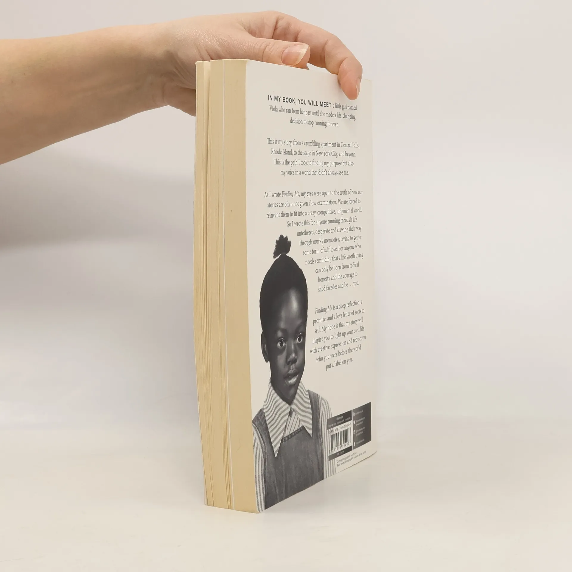In my book, you will meet a little girl named Viola who ran from her past until she made a life changing decision to stop running forever.This is my story, from a crumbling apartment in Central Falls, Rhode Island, to the stage in New York City, and beyond. This is the path I took to finding my purpose and my strength, but also to finding my voice in a world that didn't always see me.As I wrote Finding Me, my eyes were open to the truth of how our stories are often not given close examination. They are bogarted, reinvented to fit into a crazy, competitive, judgmental world. So I wrote this for anyone who is searching for a way to understand and overcome a complicated past, let go of shame, and find acceptance. For anyone who needs reminding that a life worth living can only be born from radical honesty and the courage to shed facades and be...you.Finding Me is a deep reflection on my past and a promise for my future. My hope is that my story will inspire you to light up your own life with creative expression and rediscover who you were before the world put a label on you.