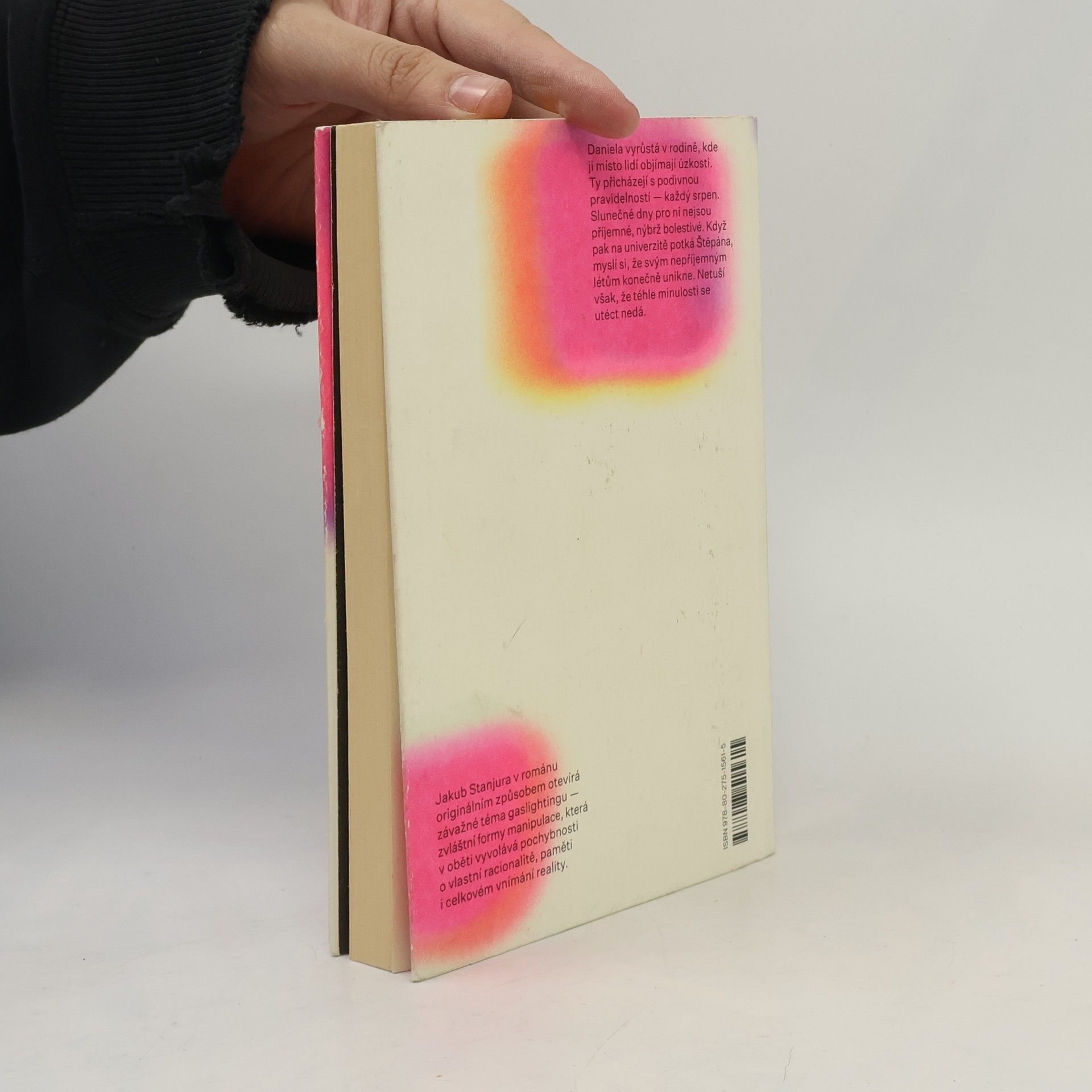 Kam až jsme schopni kvůli tomu druhému zajít? Daniela vyrůstá v rodině, kde ji místo lidí objímají úzkosti. Ty přicházejí s nevysvětlitelnou pravidelností — každý srpen. Slunečné dny pro ni nejsou příjemné, nýbrž bolestivé. Když pak na univerzitě potká Štěpána, myslí si, že svým nepříjemným létům konečně unikne. Netuší však, že téhle minulosti se utéct nedá.Jakub Stanjura v románu originálním způsobem otevírá závažné téma gaslightingu — zvláštní formy manipulace, při níž oběť zpochybňuje vlastní racionalitu, paměť i celkové vnímání reality.