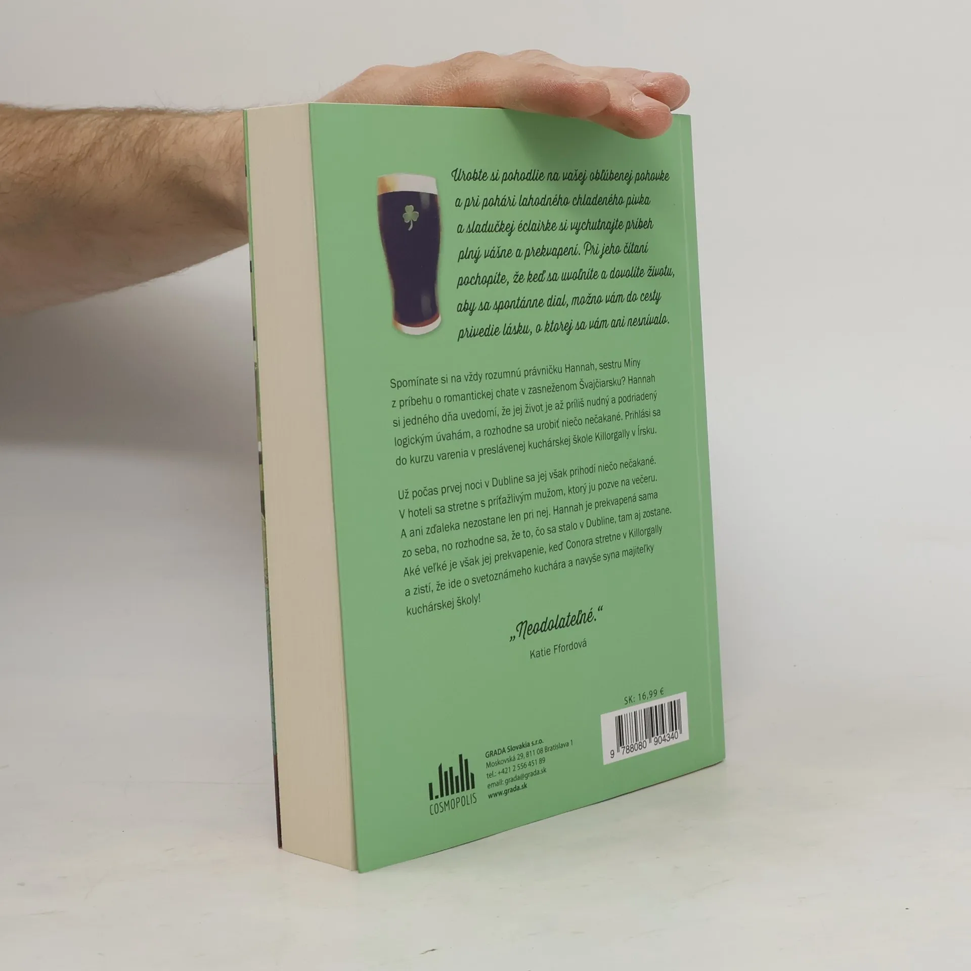 Urobte si pohodlie na vašej obľúbenej pohovke a pri pohári lahodného chladeného pivka a sladučkej éclairke si vychutnajte príbeh plný vášne a prekvapení. Pri jeho čítaní pochopíte, že keď sa uvoľníte a dovolíte životu, aby sa spontánne dial, možno vám do cesty privedie lásku, o ktorej sa vám ani nesnívalo. Spomínate si na vždy rozumnú právničku Hannah, sestru Míny z príbehu o romantickej chate v zasneženom Švajčiarsku? Hannah si jedného dňa uvedomí, že jej život je až príliš nudný a podriadený logickým úvahám, a rozhodne sa urobiť niečo nečakané. Prihlási sa do kurzu varenia v preslávenej kuchárskej škole Killorgally v Írsku. Už počas prvej noci v Dubline sa jej však prihodí niečo nečakané. V hoteli sa stretne s príťažlivým mužom, ktorý ju pozve na večeru. A ani zďaleka nezostane len pri nej. Hannah je prekvapená sama zo seba, no rozhodne sa, že to, čo sa stalo v Dubline, tam aj zostane. Aké veľké je však jej prekvapenie, keď Conora stretne v Killorgally a zistí, že ide o svetoznámeho kuchára a navyše syna majiteľky kuchárskej školy.