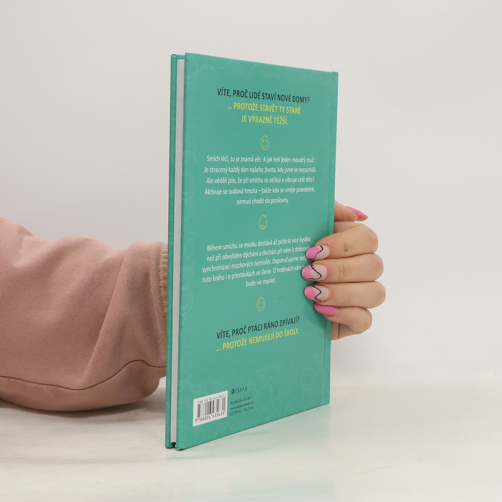 Tato kniha plná vtipů udělá radost všem. Ať už se začtete do vtipů o Pepíčkovi, ze školy, o prarodičích, z pohádek nebo dalších, pořádně se zasmějete a budete mít dobrou náladu. Věděli jste, že během smíchu se mozku dostává až 5 x více kyslíku než při obvyklém dýchání a dochází při něm k dokonalé synchronizaci mozkových hemisfér? Doporučujeme tedy číst tuto knihu i o přestávkách ve škole. O hodinách vám to pak bude víc myslet.