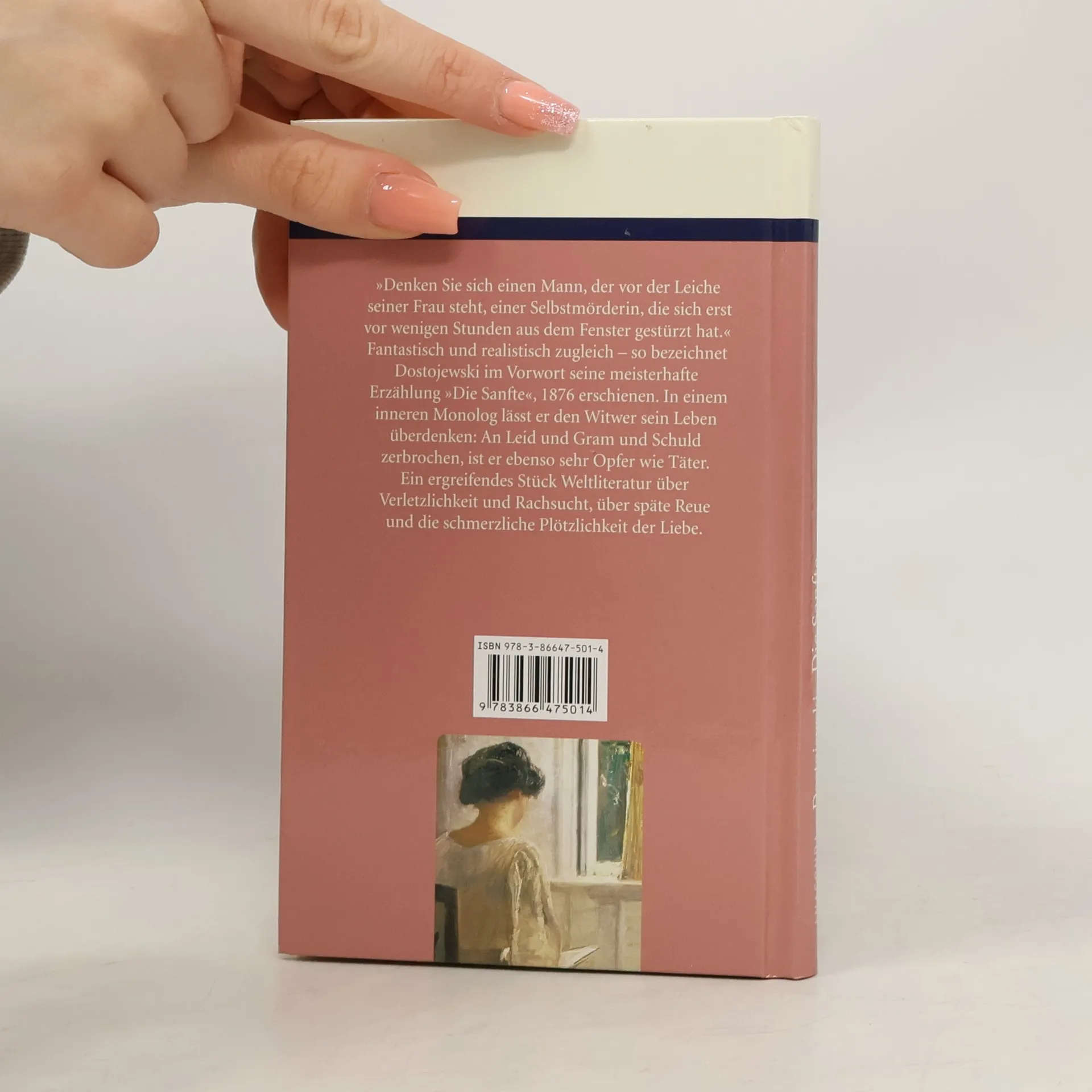 »Denken Sie sich einen Mann, der vor der Leiche seiner Frau steht, einer Selbstmörderin, die sich erst vor wenigen Stunden aus dem Fenster gestürzt hat.« Fantastisch und realistisch zugleich – so bezeichnet Dostojewski im Vorwort seine meisterhafte Erzählung »Die Sanfte«, 1876 erschienen. In einem inneren Monolog lässt er den Witwer sein Leben überdenken: An Leid und Gram und Schuld zerbrochen, ist er ebenso sehr Opfer wie Täter. Ein ergreifendes Stück Weltliteratur über Verletzlichkeit und Rachsucht, über späte Reue und die schmerzliche Plötzlichkeit der Liebe.