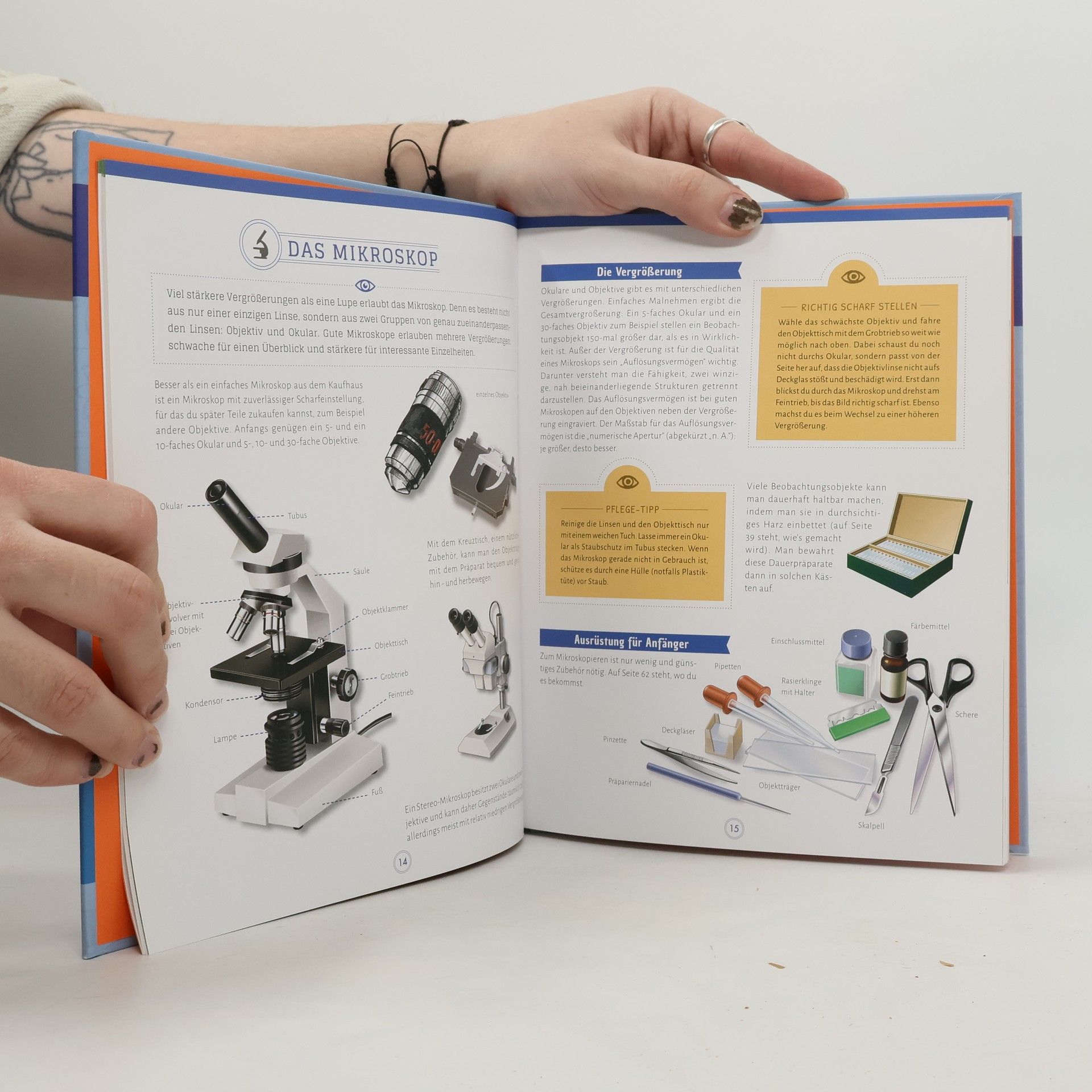 Wie funktioniert ein Mikroskop? Was kann man alles damit entdecken? Wie sind Einzeller, Mineralien, Pflanzen- und Tierzellen aufgebaut? Dieses Buch hilft bei der Auswahl des richtigen Mikroskops und beschreibt den Umgang damit von Grund auf. Schritt für Schritt wird erklärt, welche Vergrößerung die richtige ist, wie man eigene Präparate anfertigt und Dauerpräparate herstellt. Profis finden Extra-Tipps und können sich über Forschermikroskope wie das Raster-Elektronenmikroskop informieren. Auch das digitale Mikroskopieren – Mikro- und Makrofotos mit dem Smartphone – wird erklärt.