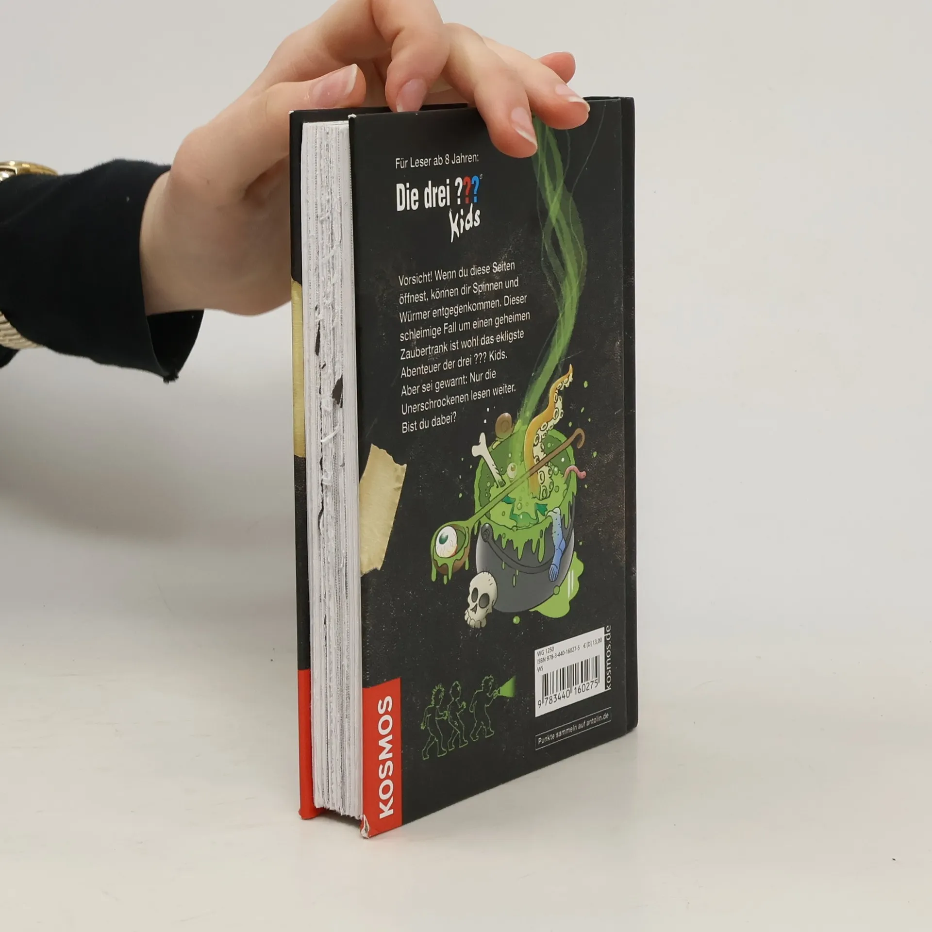 Auf Onkel Titus‘ Schrottplatz fällt den drei ??? Kids ein altes, zerschlissenes Buch in die Hände. Etwa das Werk einer Hexe? Unter den Zaubersprüchen im Buch finden Justus, Peter und Bob auch ein Hexenmeister-Rezept, welches unendliche Weisheit verspricht. Aber noch bevor die Freunde den Trank zusammenbrauen können, ist schon ein ganzer Trupp finsterer Gestalten hinter ihnen her … Nicht nur die Entschlossenheit der drei Detektive ist hier gefragt, auch die Leser müssen mithelfen und die verschlossenen Seiten des Buchs auftrennen. Nur dann können die drei ??? den ekligen Fall lösen – Spannung und Nervenkitzel garantiert!