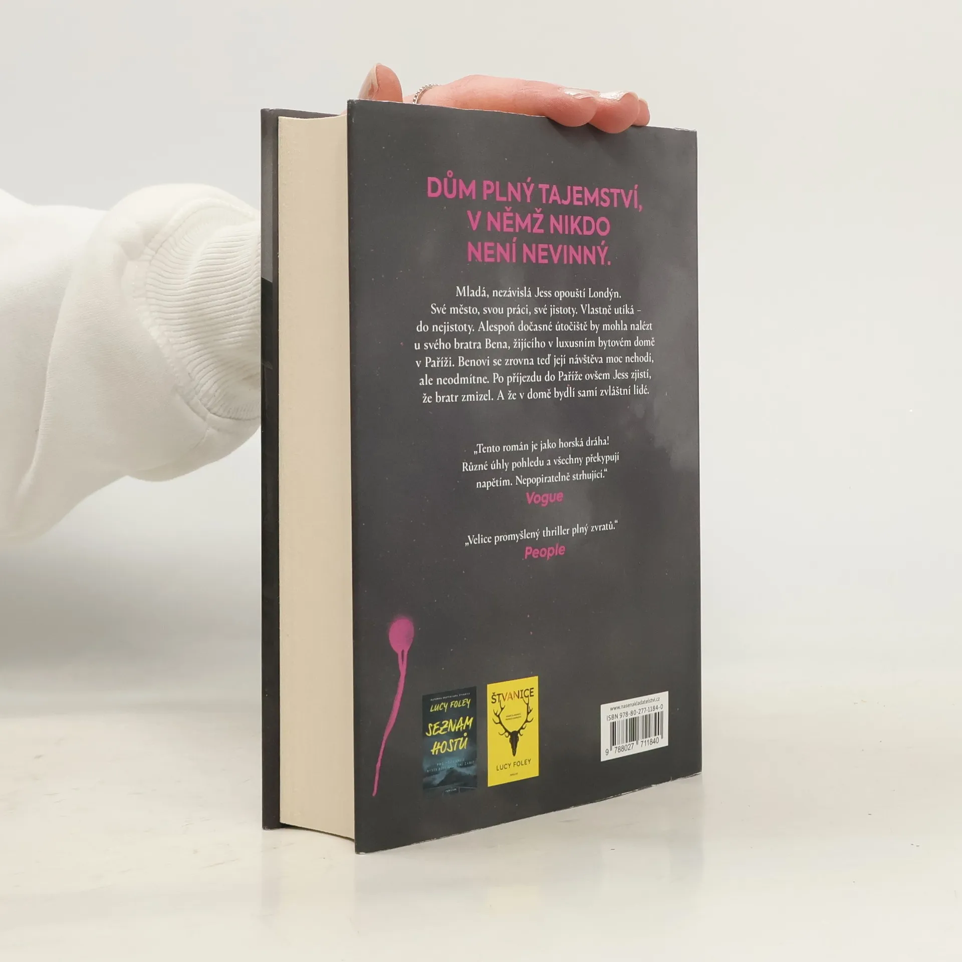 Jess se ocitla ve složité situaci. Je na mizině, přišla o práci a potřebuje někam zmizet. Když zavolala svému nevlastnímu bratrovi Benovi a zeptala se ho, jestli by mohla na nějakou dobu zůstat u něj, moc nadšený nebyl, nakonec ovšem souhlasil. A v přepychovém bytě v Paříži jí jistě bude lépe.Po příjezdu ovšem zjistí, že její bratr zmizel. A že v domě bydlí samí zvláštní lidé. Lidé, kteří mají svá tajemství a kteří se ji odtud snaží vystrnadit. Jess se nevzdává, o bratrovi se jí však nic zjistit nedaří a místo odpovědí má jen další a další otázky. Napětí v domě graduje. Proč se sousedé chovají tak podivně? Co před ní skrývají? A je vůbec Ben ještě naživu?Dáma z vyšší společnosti a její despotický manžel. Alkoholik, jemuž utekla žena. Sympaťák, co se snaží pomoct. Psychicky nemocná dívka. Záhadná domovnice, které nic neunikne.Všichni jsou podezřelí. Všichni něco ví, ale mlčí. A všichni udělají cokoliv, aby jejich strašlivá tajemství nikdy nikdo neodhalil…