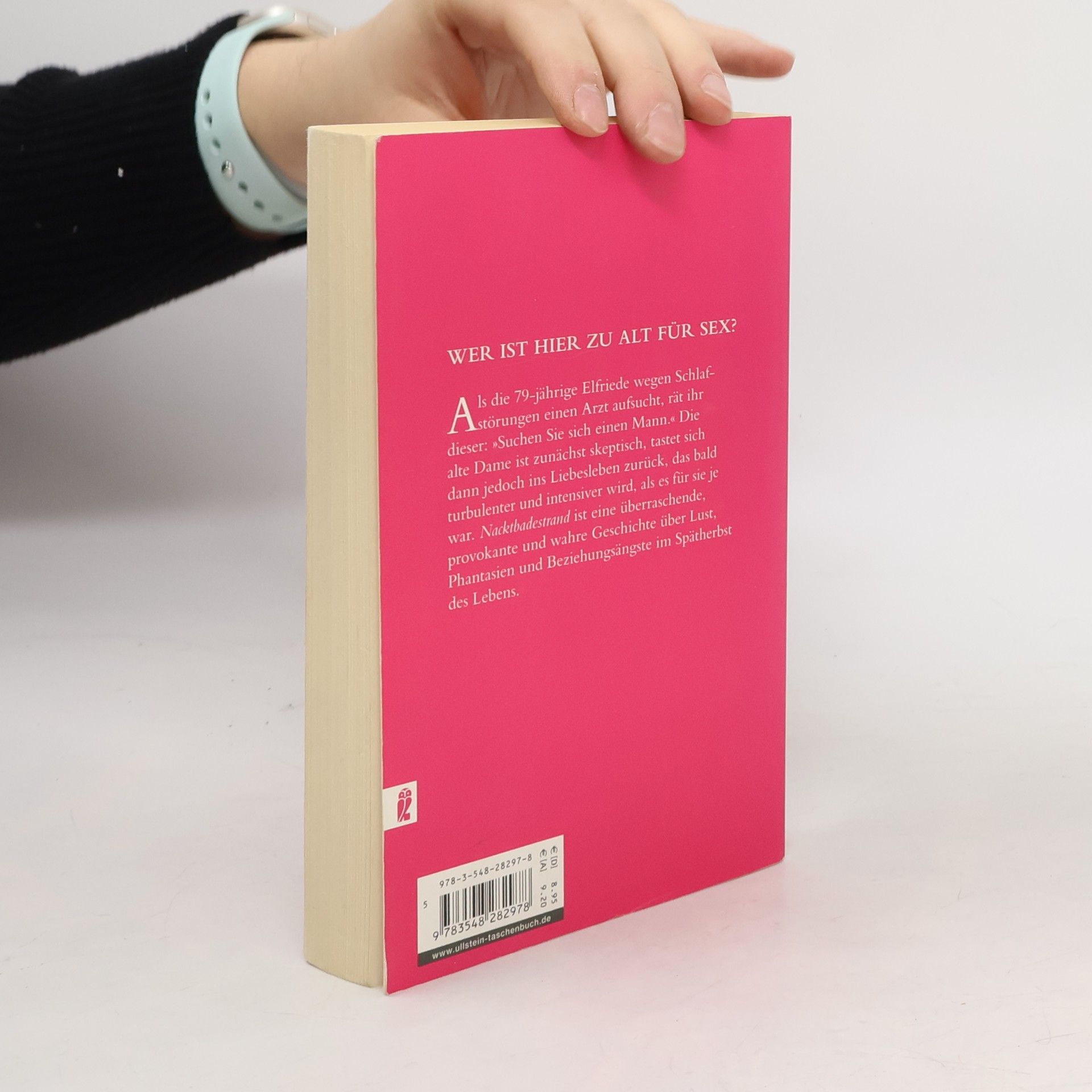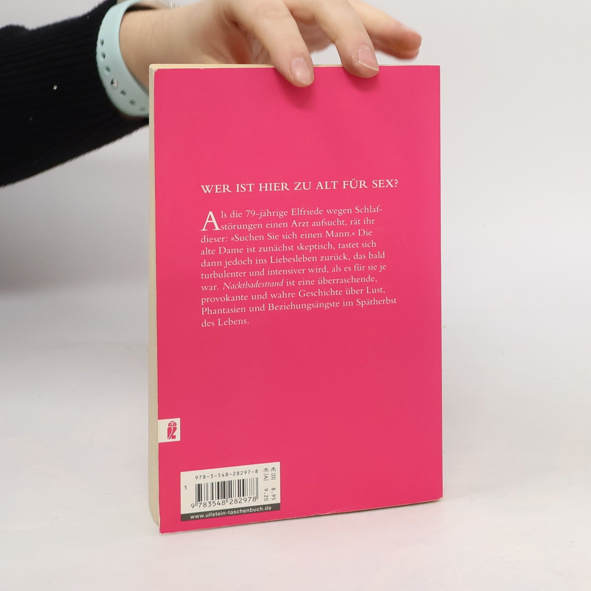 Als die 79-jährige Elfriede wegen Schlafstörungen einen Arzt aufsucht, rät ihr dieser: »Suchen Sie sich einen Mann.« Die alte Dame ist zunächst skeptisch, tastet sich dann jedoch ins Liebesleben zurück, das bald turbulenter und intensiver wird, als es für sie je war. Nacktbadestrand ist eine überraschende, provokante und wahre Geschichte über Lust, Phantasien und Beziehungsängste im Spätherbst des Lebens.
