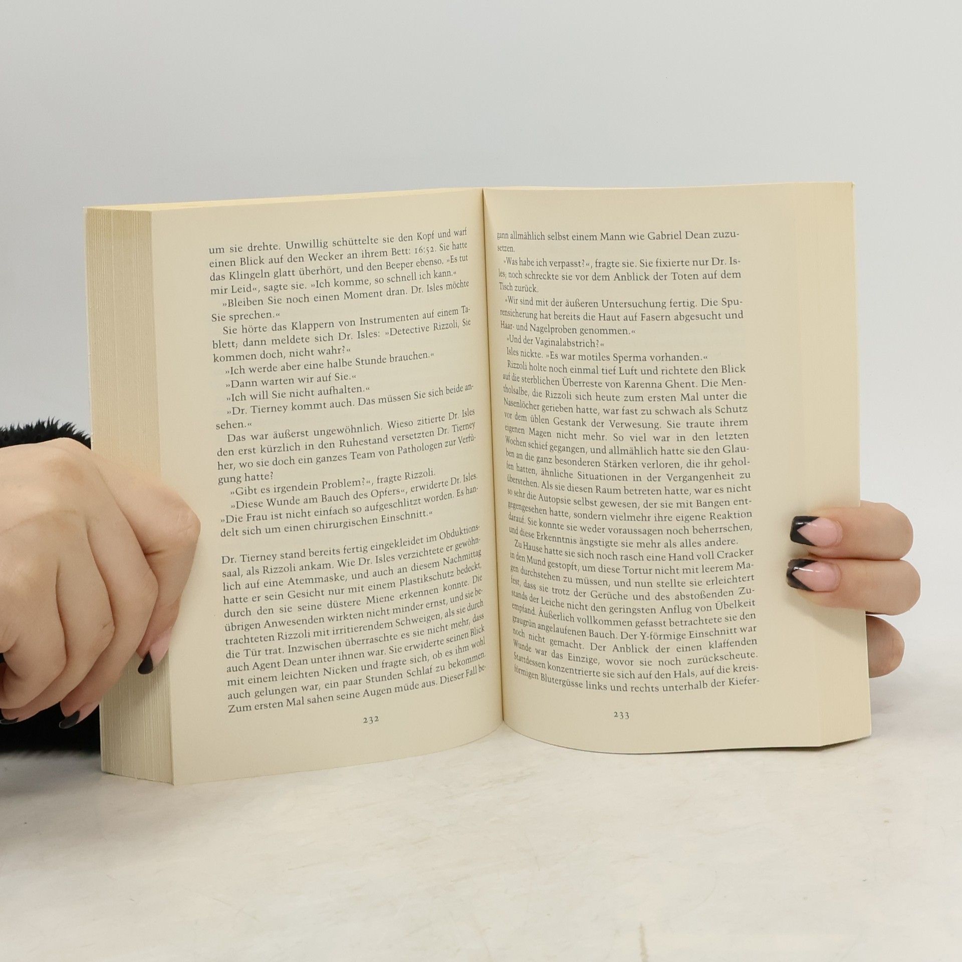 Detective Jane Rizzoli wird in ein Bostoner Villenviertel gerufen, wo sie die Leiche des Arztes Richard Yeager vorfindet. Die Untersuchung ergibt, dass Gail Yeager vor den Augen ihres Mannes vergewaltigt wurde, bevor der Täter ihm die Kehle durchschnitt. Der perverse Mord erinnert Jane an den »Chirurgen«, einen psychopathischen Serienkiller, den sie ein Jahr zuvor verhaftete – nachdem sie ihm beinahe selbst zum Opfer gefallen wäre. Der »Chirurg« sitzt im Gefängnis, aber der neue Mord trägt eindeutig seine Handschrift. Und Jane weiß, dass er noch eine Rechnung mit ihr offen hat … Ein Psychothriller der Extraklasse – brillant konstruiert, glänzend geschrieben – und Nerven zerreißend spannend!