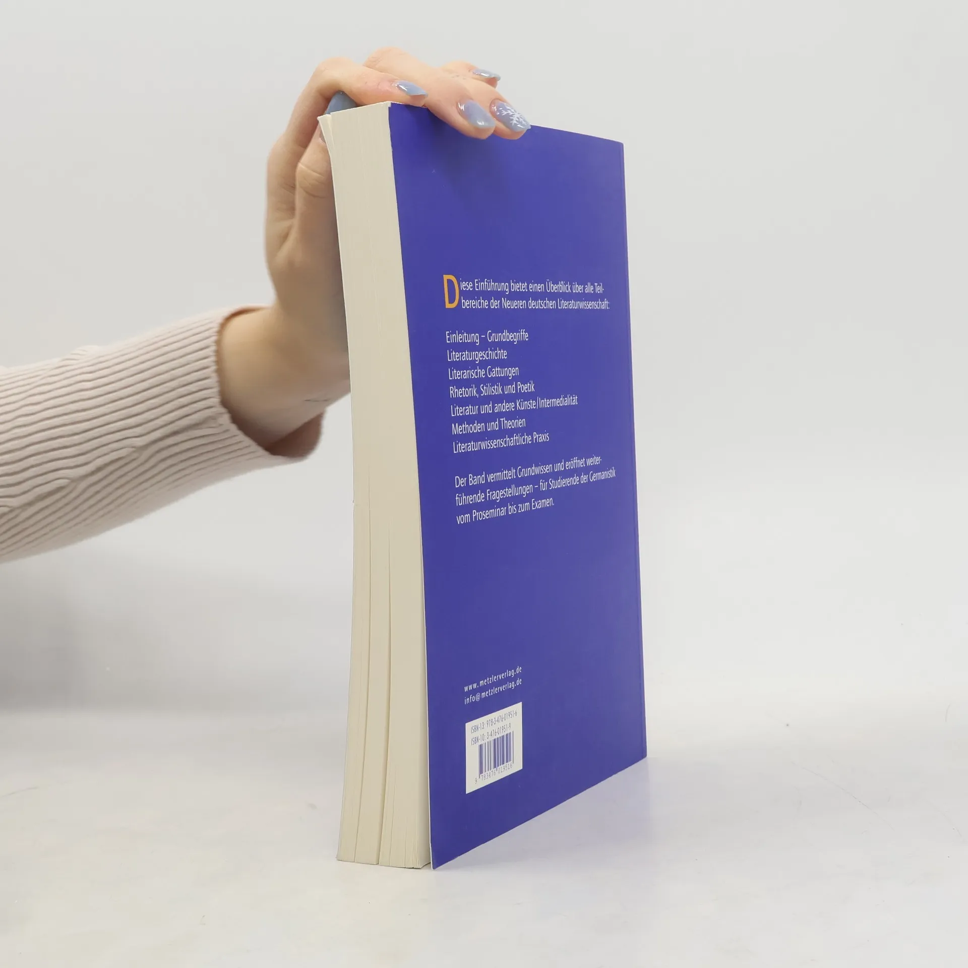 Die Einführung bietet einen Überblick über alle Teilbereiche der Neueren deutschen Literaturwissenschaft. Sie erklärt systematisch die zentralen Begriffe, gibt einen historischen Abriss von der Frühen Neuzeit bis zur Gegenwart und führt in die Analyse der verschiedenen literarischen Gattungen ein. Thematisiert werden auch die vielschichtigen Zusammenhänge von Literatur, anderen Künsten und Medien. Methoden und Theoriebildungen von der Hermeneutik bis zur Systemtheorie werden ebenfalls berücksichtigt. Schließlich werden editionsphilologische Verfahren und Arbeitstechniken des literaturwissenschaftlichen Studiums vorgestellt. Am Ende steht ein Ausblick auf Berufsfelder für Literaturwissenschaftler.