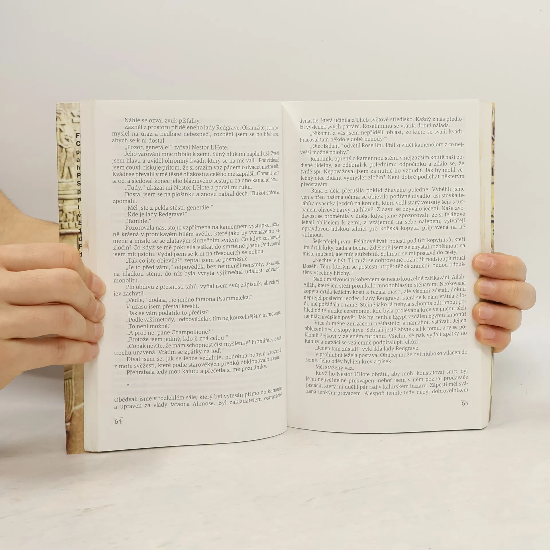 Historický román popisuje důležitý úsek ze života francouzského vědce, kterému se podařilo rozluštit egyptské hieroglyfy. Těžce nemocný Champollion vypráví malé dceři své poslední dobrodružství, vysněnou cestu do Egypta. Zde si nejen v praxi ověřil správnost své metody luštění hieroglyfů a poznal na vlastní oči realitu Egypta, ale také se blíže seznámil s politickým zákulisím doby a intrikami "obchodníků", kteří neváhají plenit starobylé památky ani jít přes mrtvoly pro svůj zisk. Napínavě napsaná kniha věrohodně ukazuje jednoho z nejvýznamnějších egyptologů i reálie Egypta na počátku 19. století.