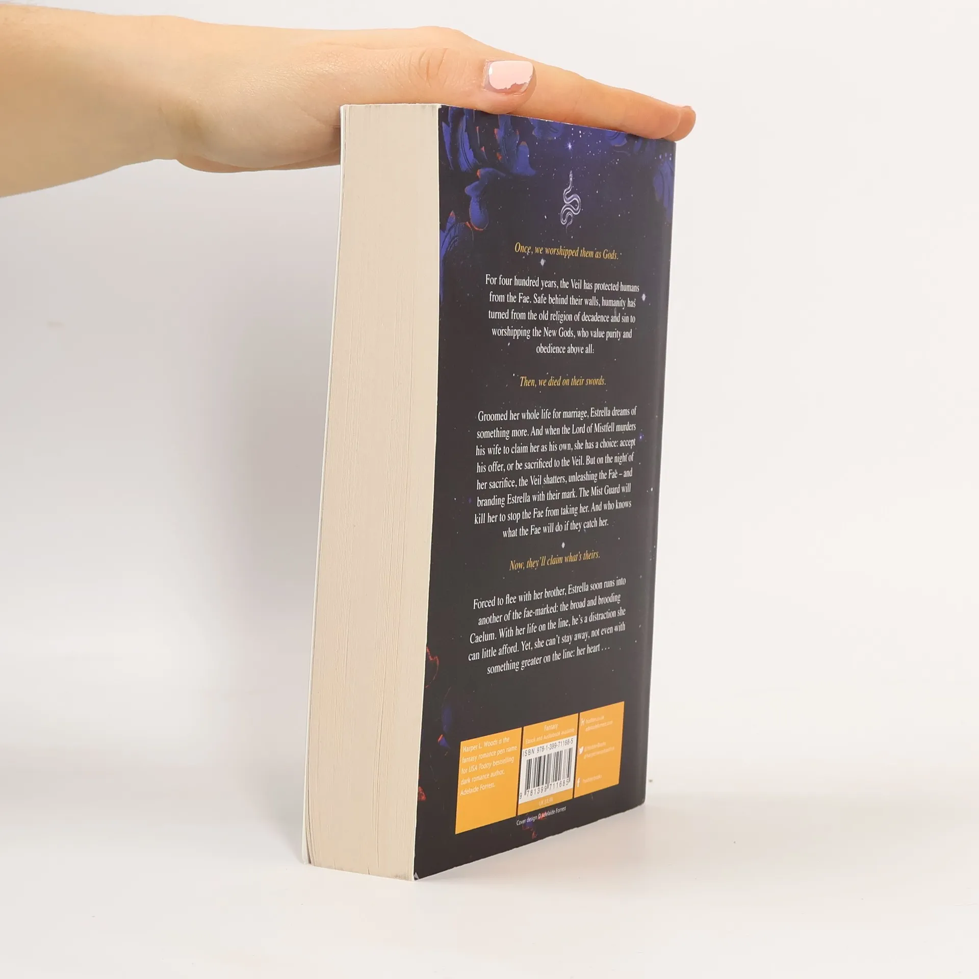 Perfect for fans of A Court of Thorns and Roses and From Blood and Ash. Once, we'd worshipped them as Gods. For nearly 400 years, the Veil has protected us from the Fae of Alfheimr. In their absence, our lives have shifted from decadence and sin to survival and virtue under the guidance of the New Gods. I've spent my entire life tending to the gardens next to the boundary between our worlds, drawn to the shimmering magic like a moth to the flame. Then, we died on their swords. All of that changes the day the Veil shatters, unleashing the fae upon our world once again. The magic of faerie marks those of us they mean to take, but the Mist Guard protecting Nothrek will kill us all before they let the fae have us. There's no choice but to flee everything I've ever known, not if I want to live to see my twenty-first birthday as a free woman. Now, they'll claim what's theirs. But before they capture me, Caelum saves me from the Wild Hunt. Fae-marked and on the run, he is able to fight back in ways I only dream of. From tentative alliance to all-consuming passion, our bond strengthens as the fae close in and evil lurks ever nearer. With my life on the line, he is everything I shouldn't dare to want and a distraction I can't afford. I can't seem to stay away, not even with something greater on the line. My heart.