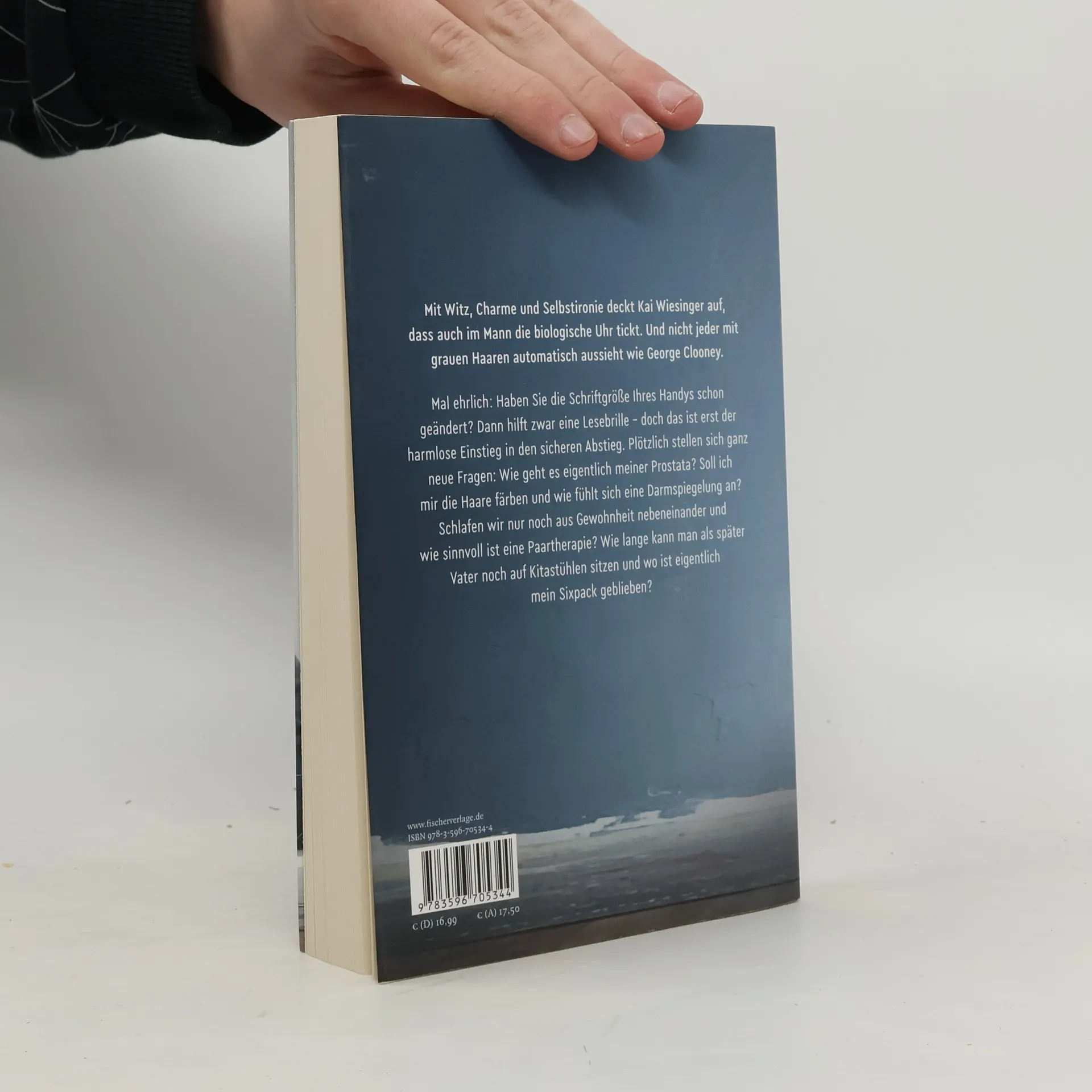 Mit Witz, Charme und Selbstironie deckt Kai Wiesinger auf, dass auch im Mann die biologische Uhr tickt. Und nicht jeder mit grauen Haaren automatisch aussieht wie George Clooney. Mal ehrlich: Haben Sie die Schriftgröße Ihres Handys schon geändert? Dann hilft zwar eine Lesebrille – doch das ist erst der harmlose Einstieg in den sicheren Abstieg.Plötzlich stellen sich ganz neue Fragen: Wie geht es eigentlich meiner Prostata? Soll ich mir die Haare färben und wie fühlt sich eine Darmspiegelung an? Schlafen wir nur noch aus Gewohnheit nebeneinander und wie sinnvoll ist eine Paartherapie?Wie lange kann man als später Vater noch auf Kitastühlen sitzen und wo ist eigentlich mein Sixpack geblieben?