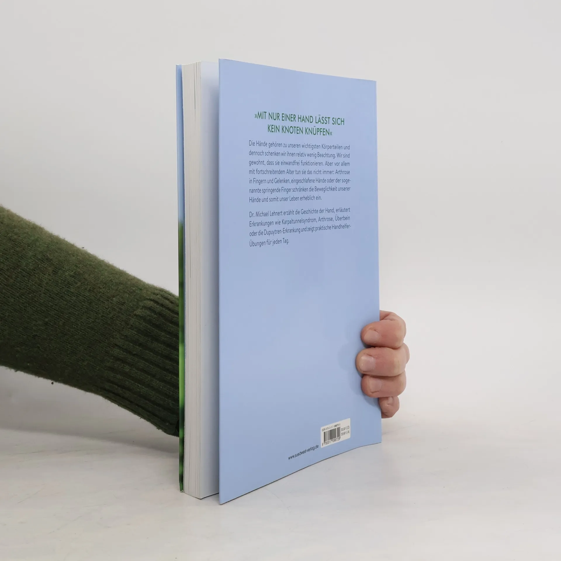 Die Hand - Das Werkzeug der Werkzeuge Die Hände gehören zu unseren wichtigsten Körperteilen und dennoch schenken wir ihnen relativ wenig Beachtung. Wir sind gewohnt, dass sie einwandfrei funktionieren. Aber vor allem mit fortschreitendem Alter tun sie das nicht immer: Arthrose in Fingern und Gelenken, eingeschlafene Hände oder der sogenannte „Springende Finger“ schränken die Beweglichkeit unserer Hände und somit unser Leben erheblich ein. Das muss nicht sein, wenn wir über ausreichende Informationen verfügen. Dr. Michael Lehnert erzählt die Geschichte der Hand, erläutert Erkrankungen wie Karpaltunnelsyndrom, Arthrose, Überbein oder die Dupuytren-Erkrankung und zeigt praktische Handhelfer-Übungen für jeden Tag. Ihm gelingt es in diesem Buch, die ernstzunehmenden und beeinträchtigenden Verletzungen und Krankheitsbilder in lockerer und humorvoller Art und Weise leicht verständlich zu vermitteln. Ausstattung: ca. 60 farbige Abbildungen