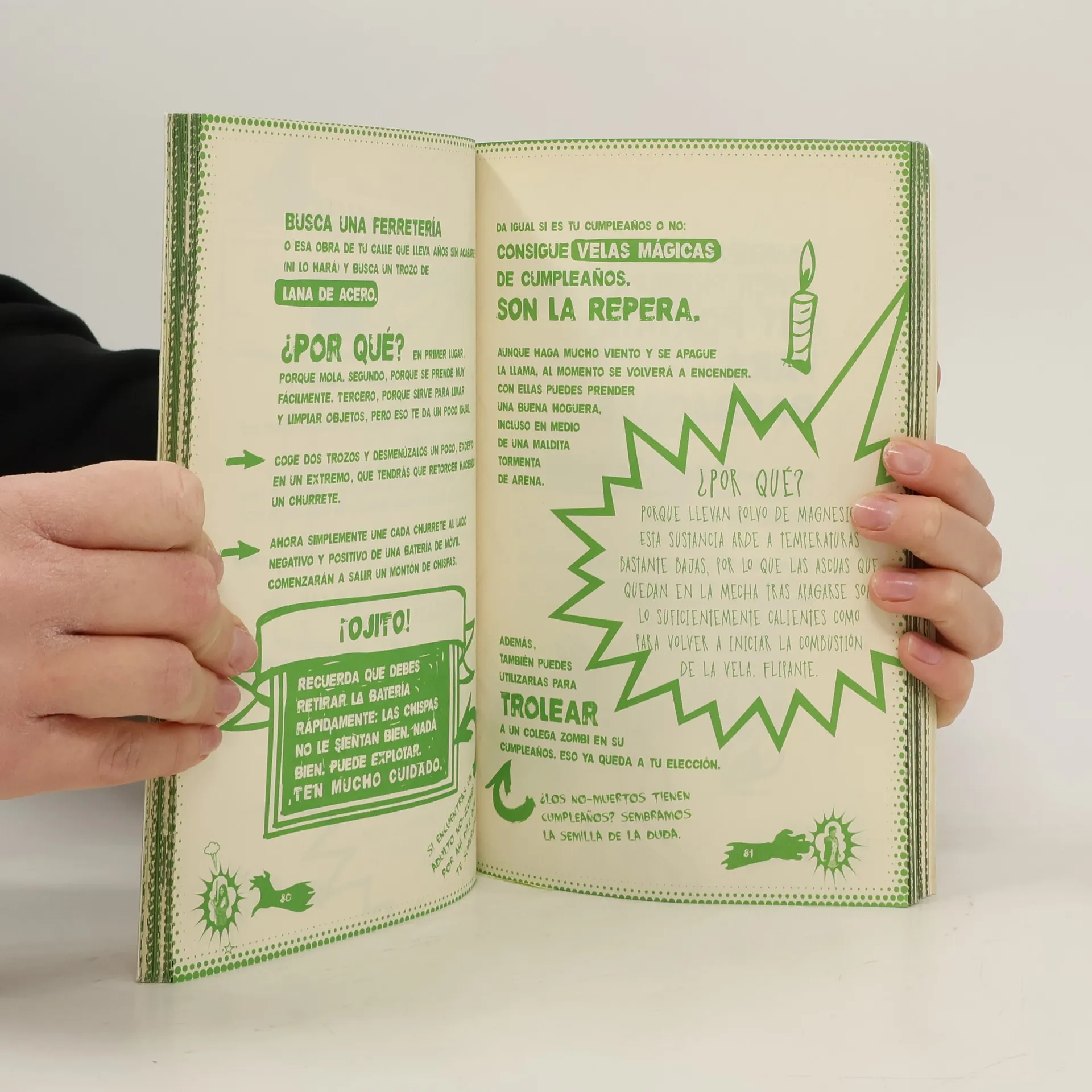 Seguro que en casa eres el rey de los videojuegos de zombis. Pero..., ¿cómo te las apañarías en un apocalipsis real?¿Sabrías qué alimentos elegir? ¿Cómo hacer fuego con un paquete de chicles? ¿Cocer una pizza en una caja de zapatos? ¿Convertir un clip en una auténtica brújula? ¿Usar tu propia orina para hacer una pila? ¿Calcular la hora con un simple palo?En esta guía encontrarás los trucos más locos de supervivencia: cocinar en un vaso de cartón, vivir en una casa flotante e incluso fabricar tu propia lavadora portátil... ¡No hay límites!Aunque si lo que buscas es divertirte, también te enseñamos un montón de gamberradas que hacer con los zombis, como ponerles una cabeza de creeper y jugar con ellos a Zombicraft.EN RESUMEN, CON ESTE LIBRO APRENDERÁS A SOBREVIVIR Y TE LO PASARÁS BIEN. QUIÉN SABE, PUEDE QUE CUALQUIER DÍA LOS ZOMBIS SALGAN DE LA PANTALLA Y LLAMEN A TU PUERTA...