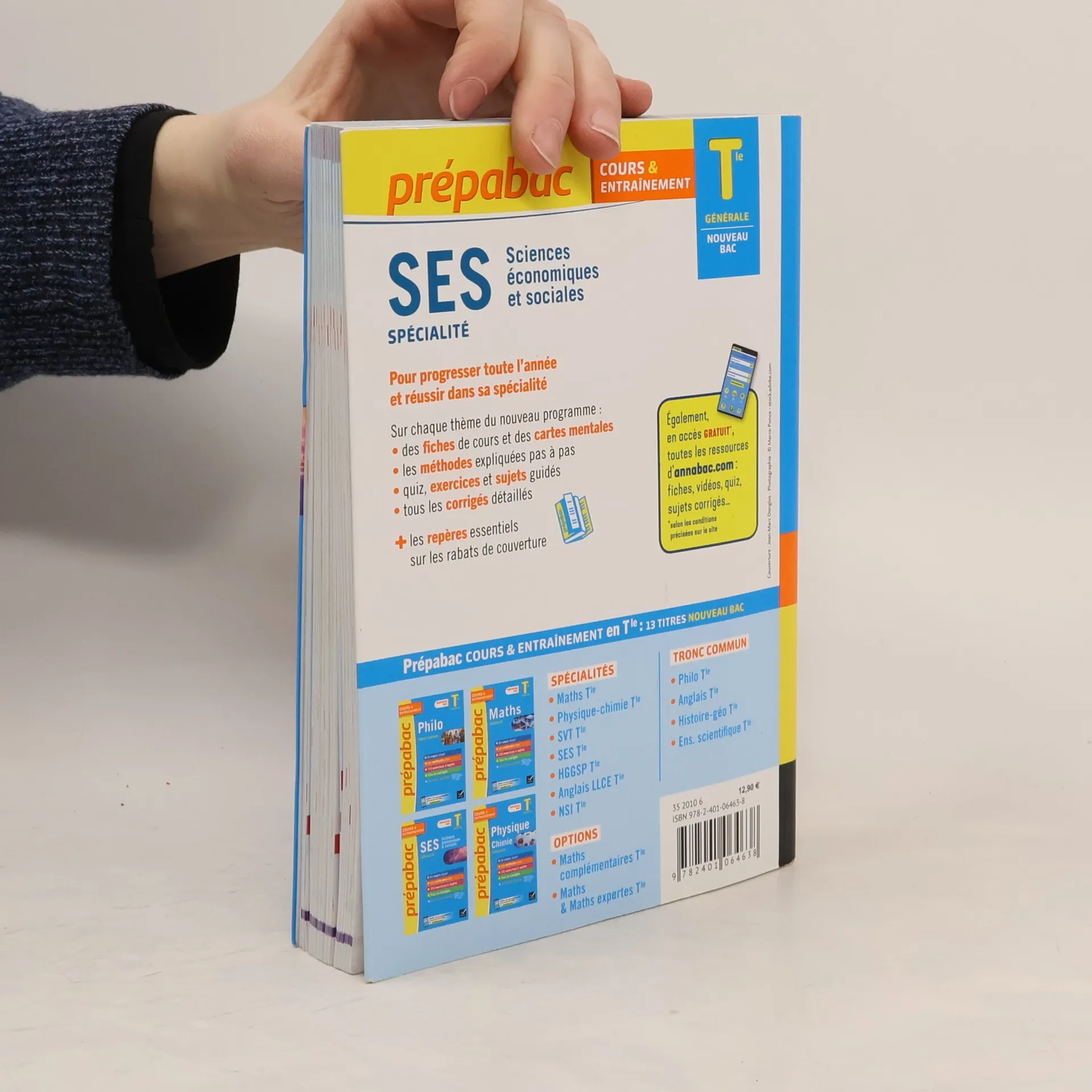Un outil de travail complet et efficace, conforme au nouveau programme de SES (enseignement de spécialité), en Tle générale. De nombreuses ressources – le cours, les méthodes clés, exercices et sujets –, pour vous accompagner tout au long de votre Terminale. Sur chaque thème du programme• Des fiches de cours synthétiques et visuelles• Une grande carte mentale récapitulative• Les méthodes pour réussir l’épreuve du bac• Une série d’exercices progressifs• Des sujets guidés « Objectif Bac »• Tous les corrigés détaillés En accès gratuit, avec l’achat du livre, sur le site www.annabac.com• Des parcours de révision interactifs proposant, pour chaque thème du programme : des fiches, des quiz, des exercices et sujets corrigés• Des conseils pour bien s’orienter