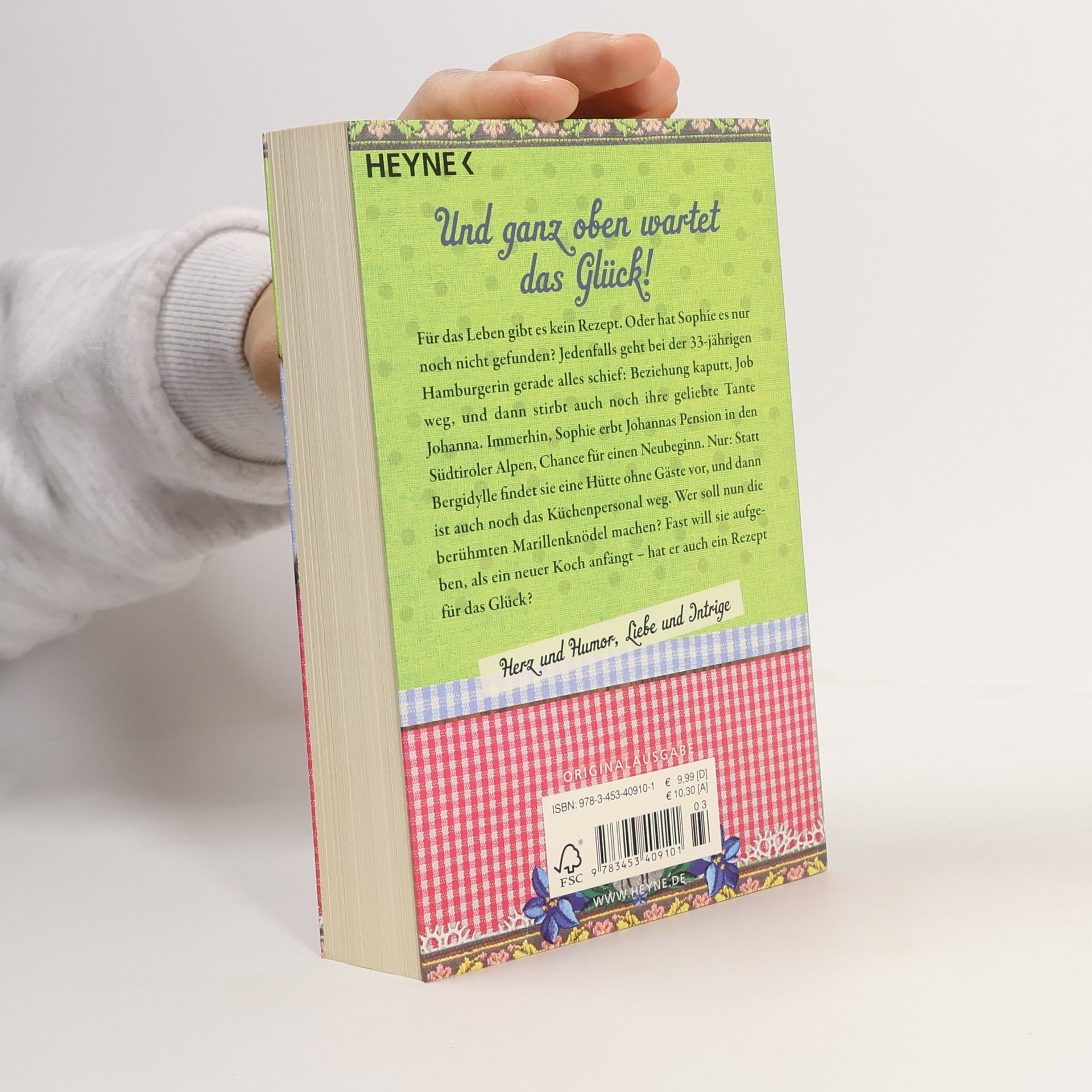 Gibt es ein Rezept für die Liebe? Für das Leben gibt es kein Rezept. Oder hat Sophie es nur noch nicht gefunden? Jedenfalls geht bei der 33-jährigen Hamburgerin gerade alles schief: Beziehung kaputt, Job weg, und dann stirbt auch noch ihre geliebte Tante Johanna. Immerhin: Sophie erbt Johannas Pension in den Südtiroler Alpen, Chance für einen Neubeginn. Nur: Statt Bergidylle findet sie eine Hütte ohne Gäste vor, und dann ist auch noch das Küchenpersonal weg. Wer soll nun die berühmten Marillenknödel machen? Fast will sie aufgeben, als ein neuer Koch anfängt – hat er auch ein Rezept für das Glück? Lesen Sie auch die Vorgeschichte als e-book in „Marillenknödel und das Geheimnis des Glücks“!