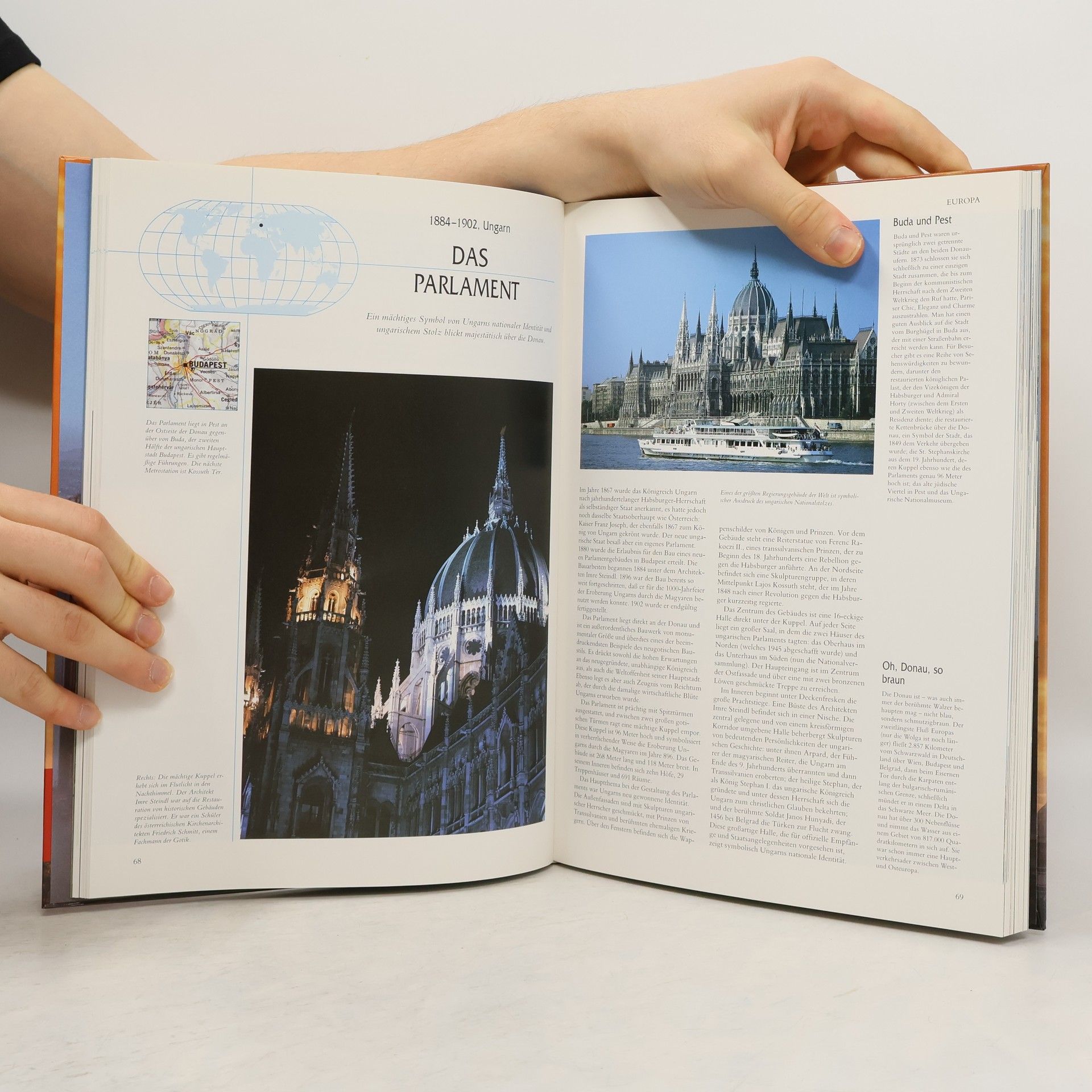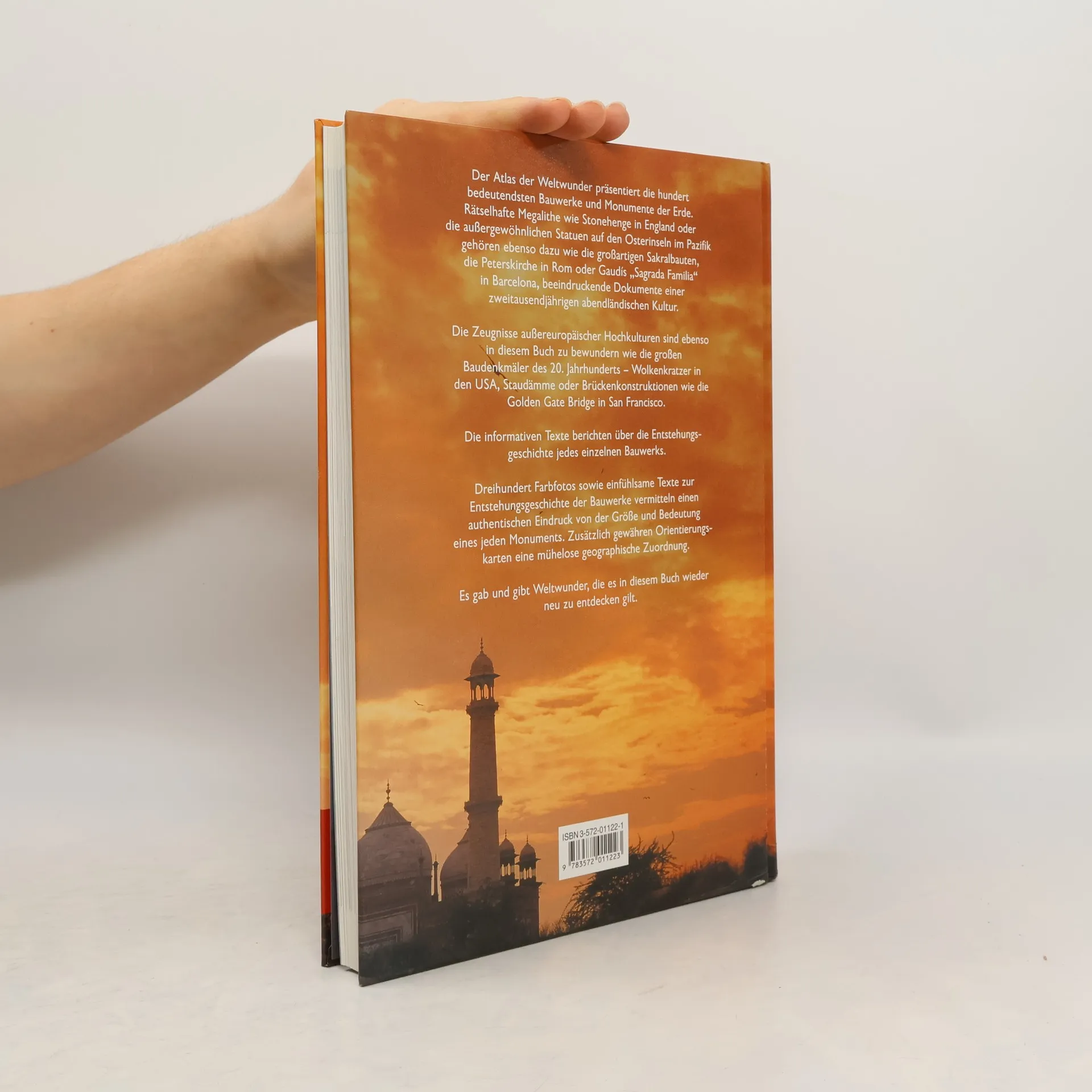 Der Atlas der Weltwunder präsentiert die hundert bedeutendsten Bauwerke und Monumente der Erde. Rätselhafte Megalithe wie Stonehenge in England oder die außergewöhnlichen Statuen auf den Osterinseln im Pazifik gehören ebenso dazu wie die großartigen Sakralbauten, die Peterskirche in Rom oder Gaudis 'Sagrada Familia' in Barcelona, beeindruckende Dokumente einer zweitausendjährigen abendländischen Kultur. Die Zeugnisse außereuropäischer Hochkulturen sind ebenso in diesem Buch zu bewundern wie die großen Baudenkmäler des 20. Jahrhunderts - Wolkenkratzer in New York, Staudämme oder Brückenkonstruktionen wie die Golden Gate Bridge in San Francisco. Die informativen Texte berichten über die Entstehungsgeschichte jedes einzelnen Bauwerkes.