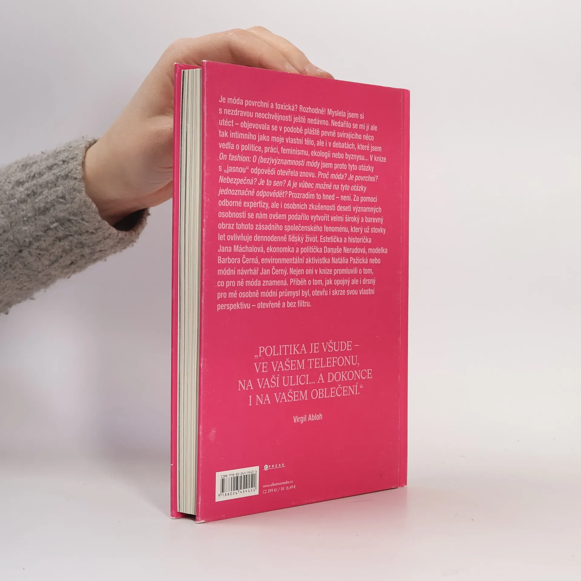 Je móda povrchní, toxická? Je to splněný sen? Nejen nad tím se spolu s autorkou Adélou Šponerovou zamýšlí deset významných osobností. Estetička Jana Máchalová, modelka Barbora Černá, ekonomka a politička Danuše Nerudová, módní návrhář Jan Černý, trendspotterka Pavlína Louženská a další promluvili o tom, co pro ně móda znamená. Nahlédněte na tento společenský fenomém, který dennodenně ovlivňuje náš život, z různých perspektiv